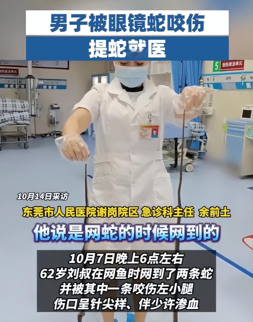 62岁男子遭蛇咬伤,打死蛇后携蛇就医!医生:被蛇咬后别打死蛇,谨防二次咬伤 近日,在广东东莞,62岁的刘大叔网鱼时网到两条蛇,左腿小腿被其中一条咬伤。他迅速将两条蛇打死,随后提着蛇前往医院急诊科就诊。 针对刘大叔的情况,有如下专业建议与说明: 被蛇咬后不宜打死蛇:医生表示,尽管刘大叔被蛇咬伤后把蛇打死了,但一般不提倡这么做,理由如下: 防止二次攻击:在试图打死或处置蛇时,可能会激怒它,使其再次发动攻击。 便于获取毒液样本:某些情况下,医生或许需要观察或检测蛇的毒液成分,打死蛇可能会对取样造成影响。 正确的应对办法: 保持镇定:切勿惊慌,减少活动,降低毒液在体内的扩散速度。 及时就医:尽快前往医院接受专业治疗。 勿切割或吸毒:不要尝试切开伤口或吸吮毒液,这些做法可能会加重伤势。 记录蛇的特征:若情况安全,尽量记住蛇的外观特点,方便医生判断毒性并制定治疗方案。 现场处理方法: 限制活动:使受伤部位低于心脏位置,减缓毒液扩散。 清洗伤口:用清水冲洗伤口,不要冷敷或热敷。 包扎伤口:用干净的布料轻轻包扎。 预防措施: 户外活动时留意周围环境,避免惊扰蛇类。 了解当地蛇类的种类与毒性,做好防护。 总之,遇到被蛇咬伤的状况,关键是保持冷静,尽快就医,不要自行处理伤口或打死蛇,以保障安全并获得最佳治疗效果。