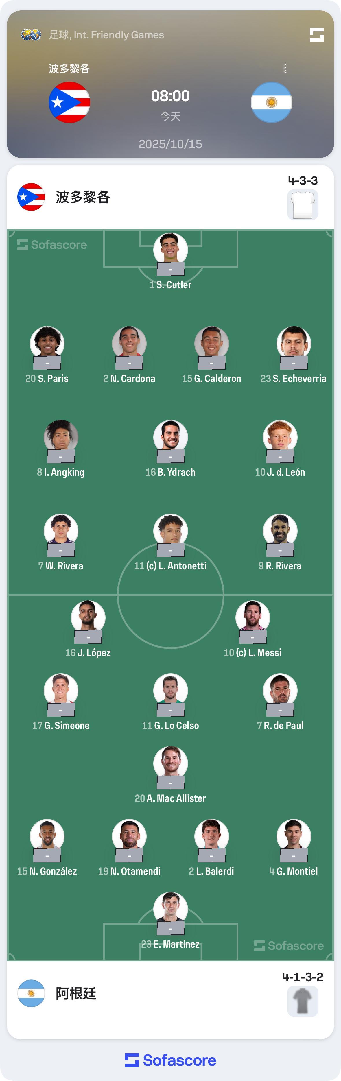 波多黎各vs阿根廷首发⬇️,梅西领衔,巴列尔迪、何塞-洛佩斯先发​​​