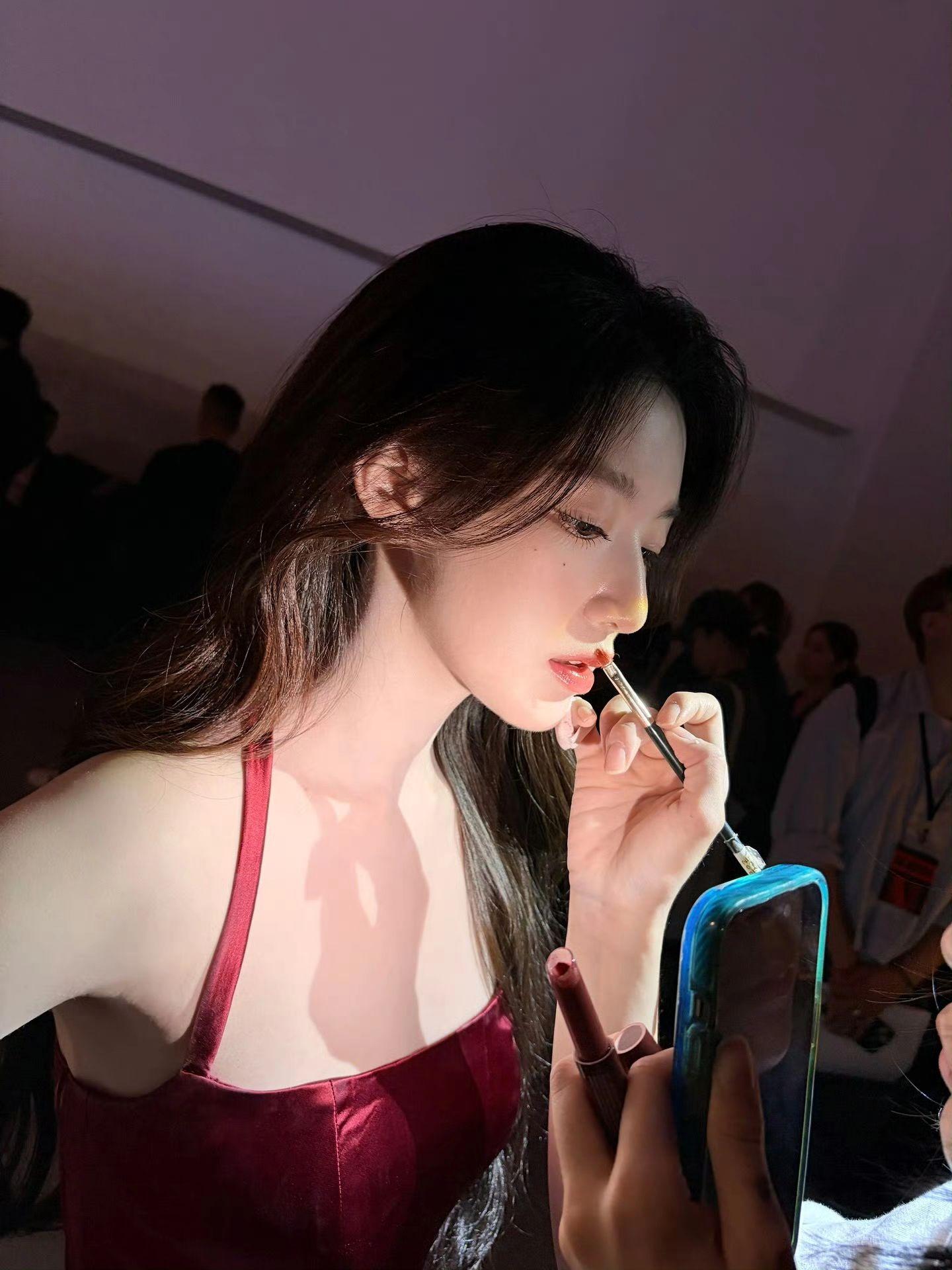 刘亦菲把死亡玫粉穿出了定制款的感觉,这种颜色普通人穿上分分钟黑三度,她居然能穿出