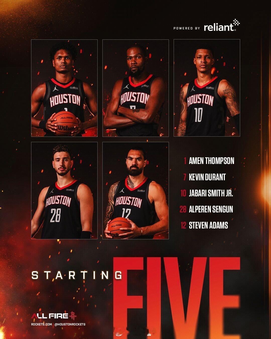昨天的独行侠,今天的火箭,都派出了一套五大先发。