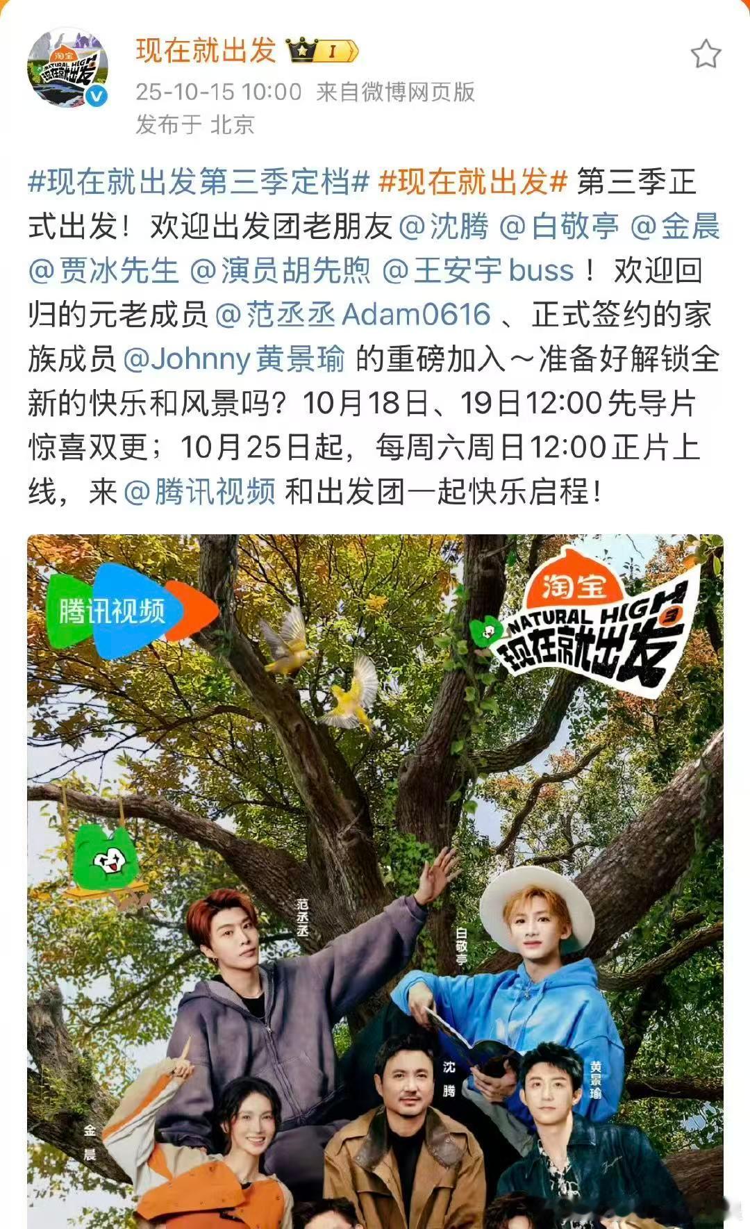 现在就出发3定档10.25 《现在就出发3》定档10月25啦!!!快乐源泉回来啦~