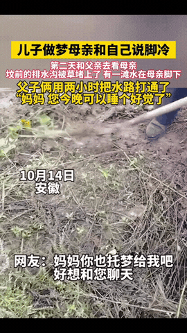 “家人们谁懂啊!安徽六安,一儿子做梦,妈妈跟他说脚冷。第二天和爸爸去坟前一看,果然排水沟被草堵了,妈妈坟前 积了一滩水! 父子俩没多说啥,埋头干了俩小时,硬是把水路通得干干净净,最后还对着坟头轻声说“妈妈您今晚能睡好觉了”。 这哪是简单的解梦,分明是刻在骨子里的牵挂——就算妈妈不在了,孩子还记着她怕不怕冷,还愿意为了她的“安心”弯腰忙活。 现在好多人说亲情淡了,可看这对父子就知道,真正的爱从不会被生死隔开。