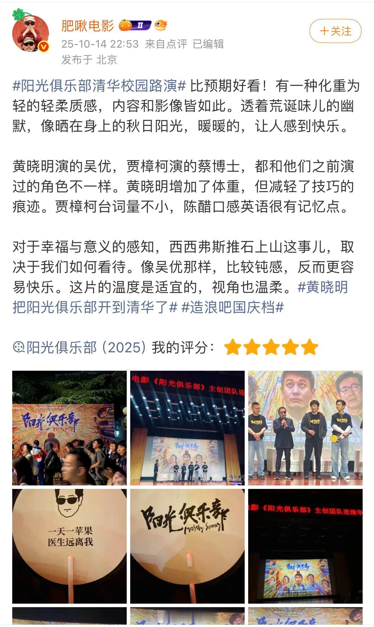 黄晓明新电影《阳光俱乐部》首映影评来了,好评很多呀,都在说差点没认出是黄晓明,真