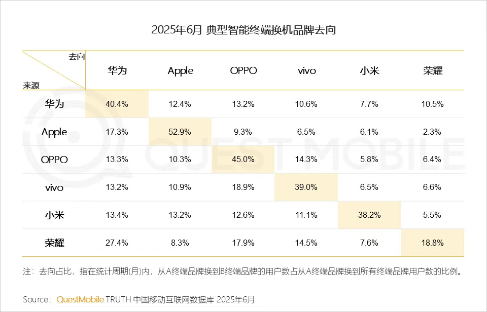 QuestMobile的报告,OPPO是同品牌换机用户占比达45%,所有品牌TO
