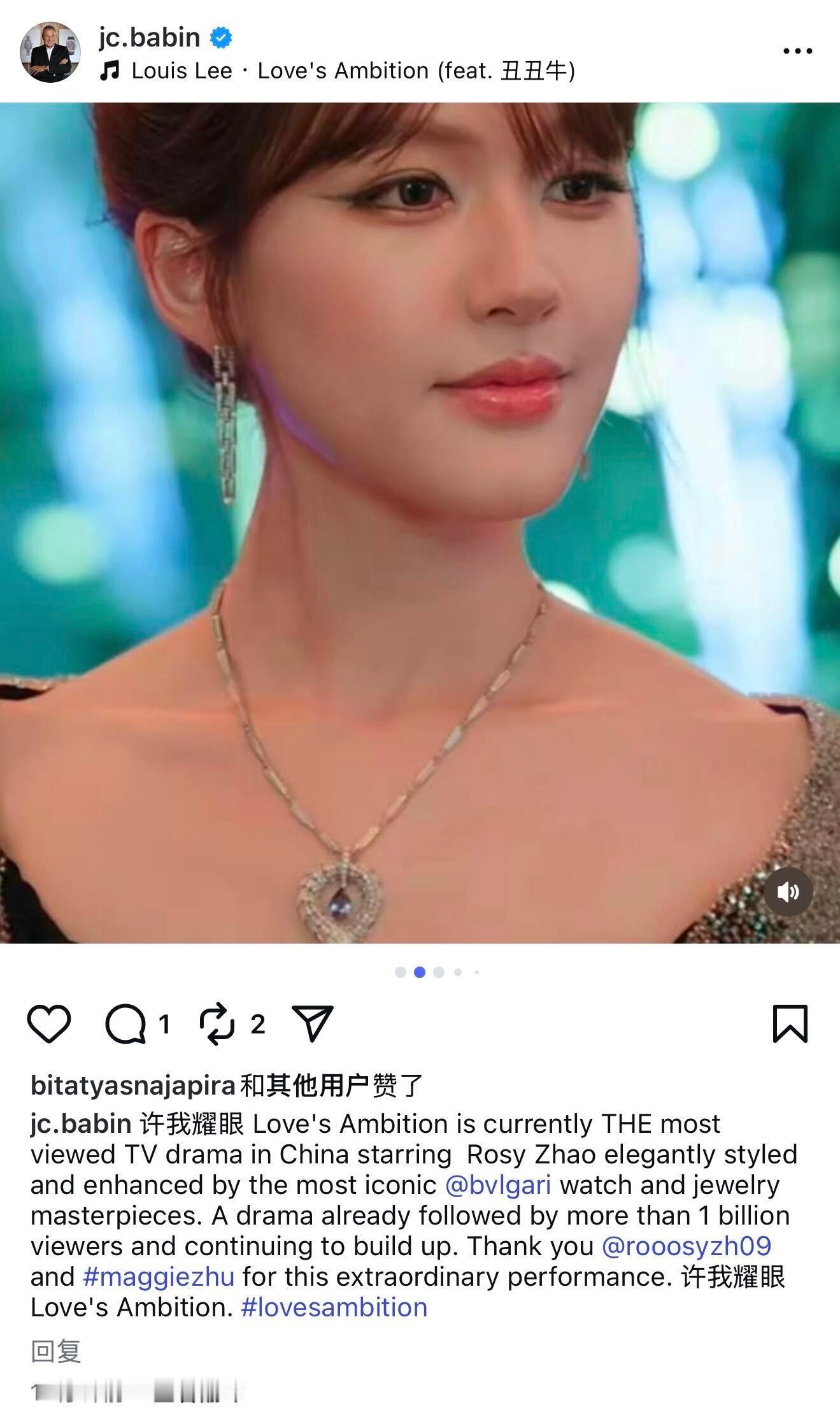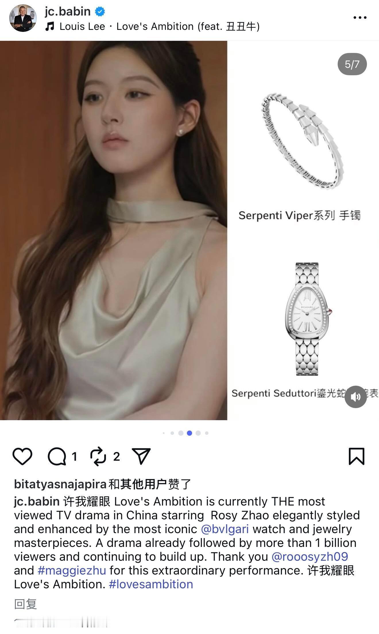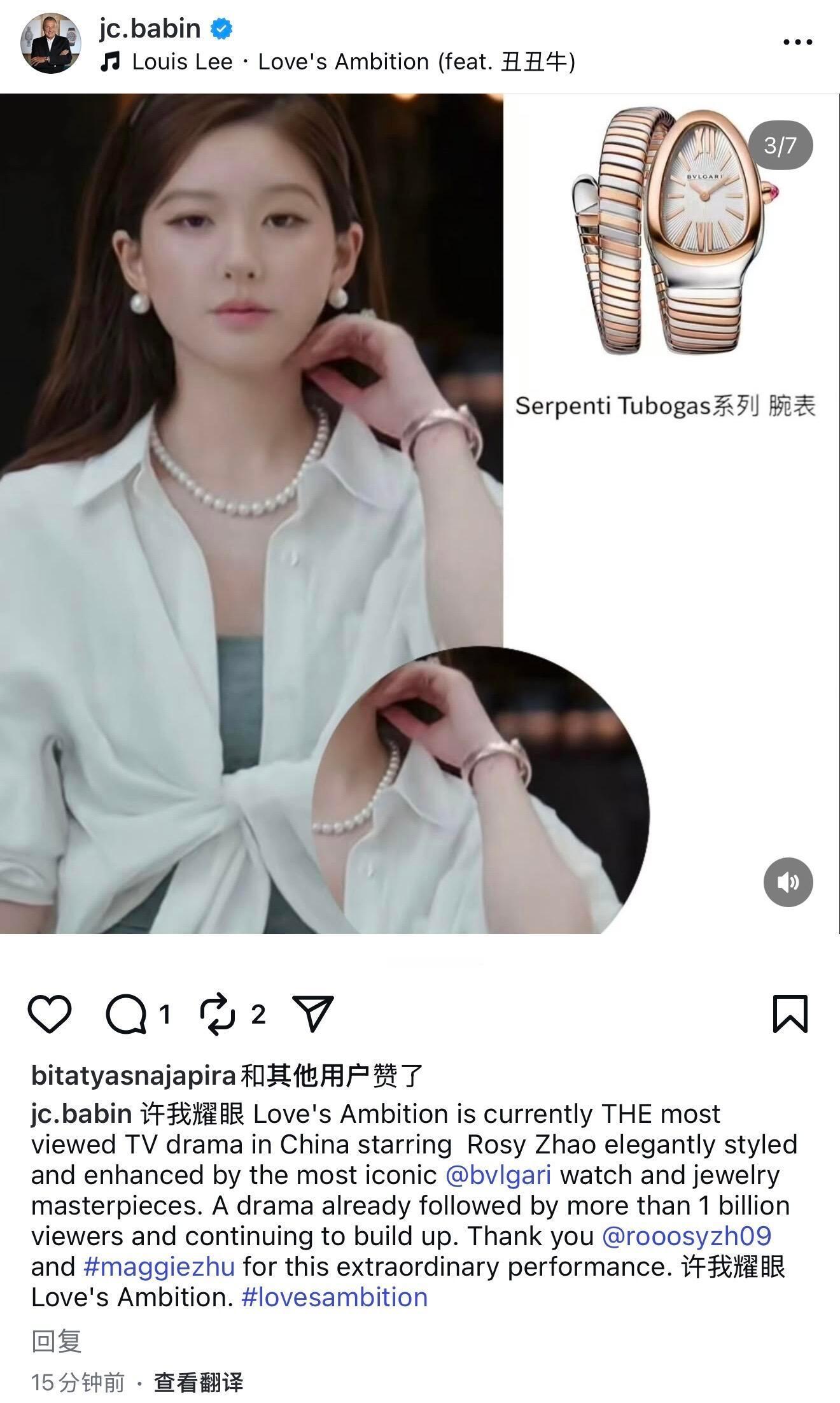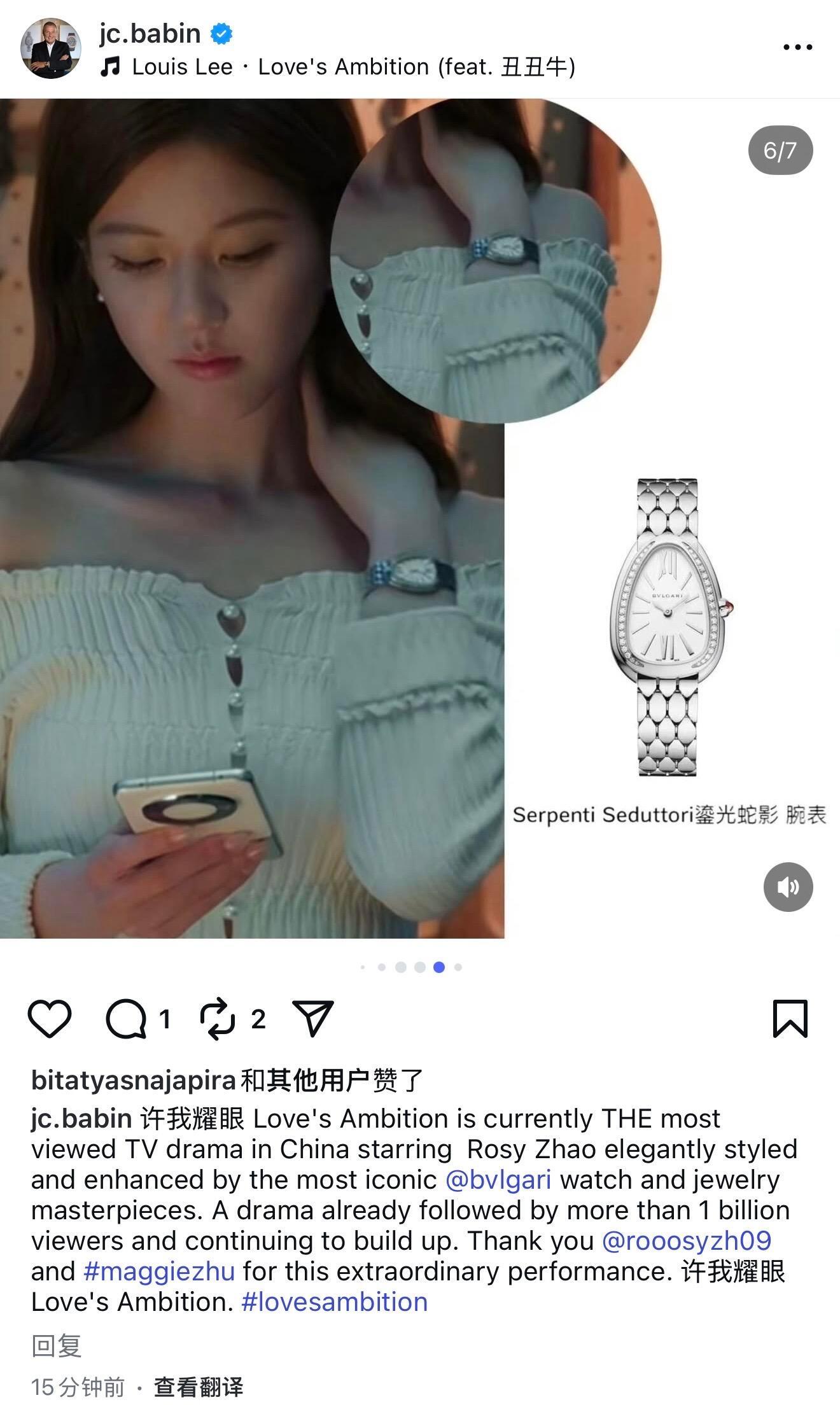 宝格丽总裁发文夸赵露思新剧许我耀眼