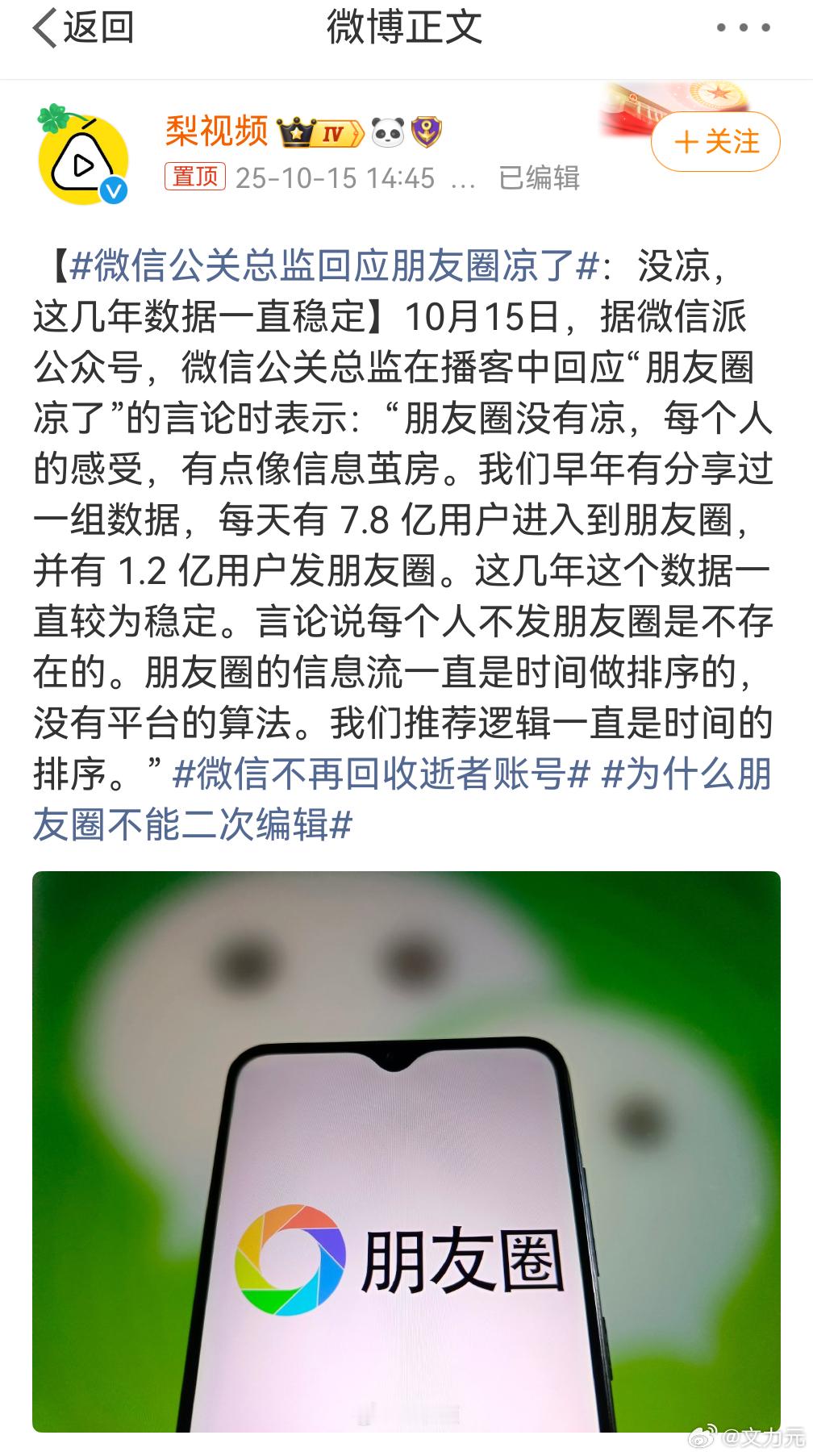 微信公关总监回应朋友圈凉了,其实有没有可能你觉得凉了是因为你已经不是发朋友圈的