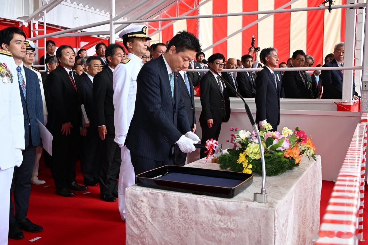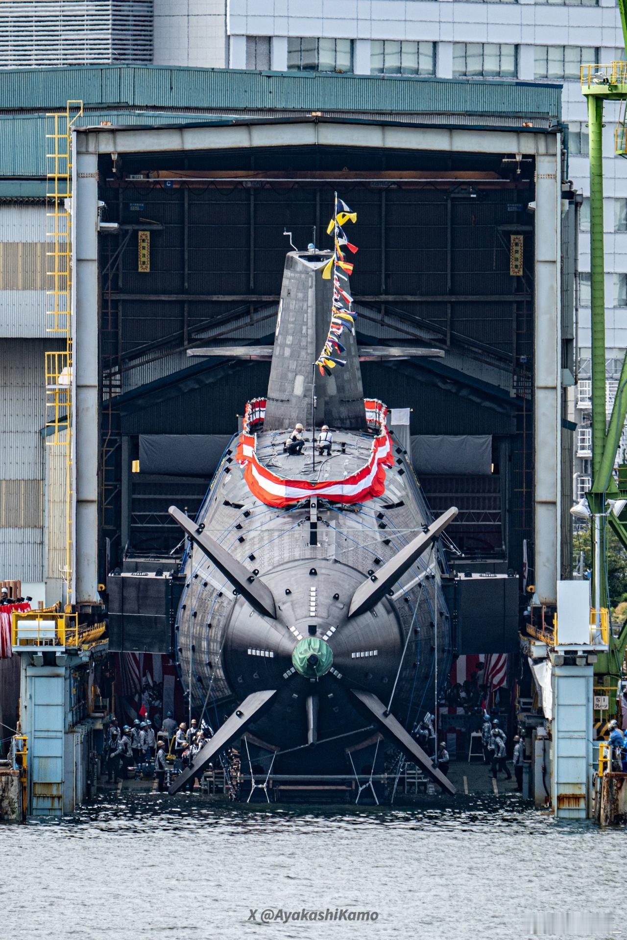 10月14日日本海上自卫队“大鲸级”柴电潜艇SS-518“苍鲸号”在川崎重工神户工厂举行命名下水仪式。此艇为大鲸级六号艇,预计在2027年3月服役。“苍鲸”是日本海上自卫队首次使用的舰艇名。