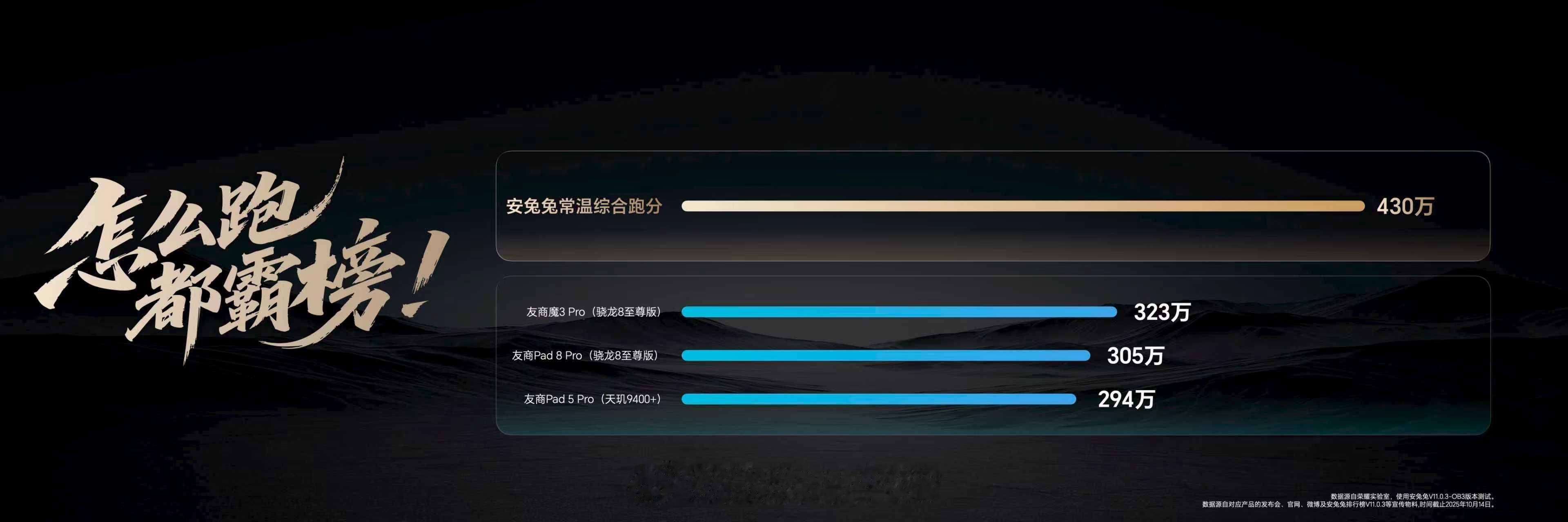 怎么跑,都霸榜!荣耀MagicPad3Pro是全球首款搭载第五代骁龙8至尊版的平板,常温版环境下安兔兔跑分突破430万称霸榜单,支持至多20个窗口同时运行,Pro级性能表现领先行业。《鸣潮》帧率与控温领先同级,《原神》可稳定运行120帧+2.6K高画质,超分超帧表现业界超强[good]