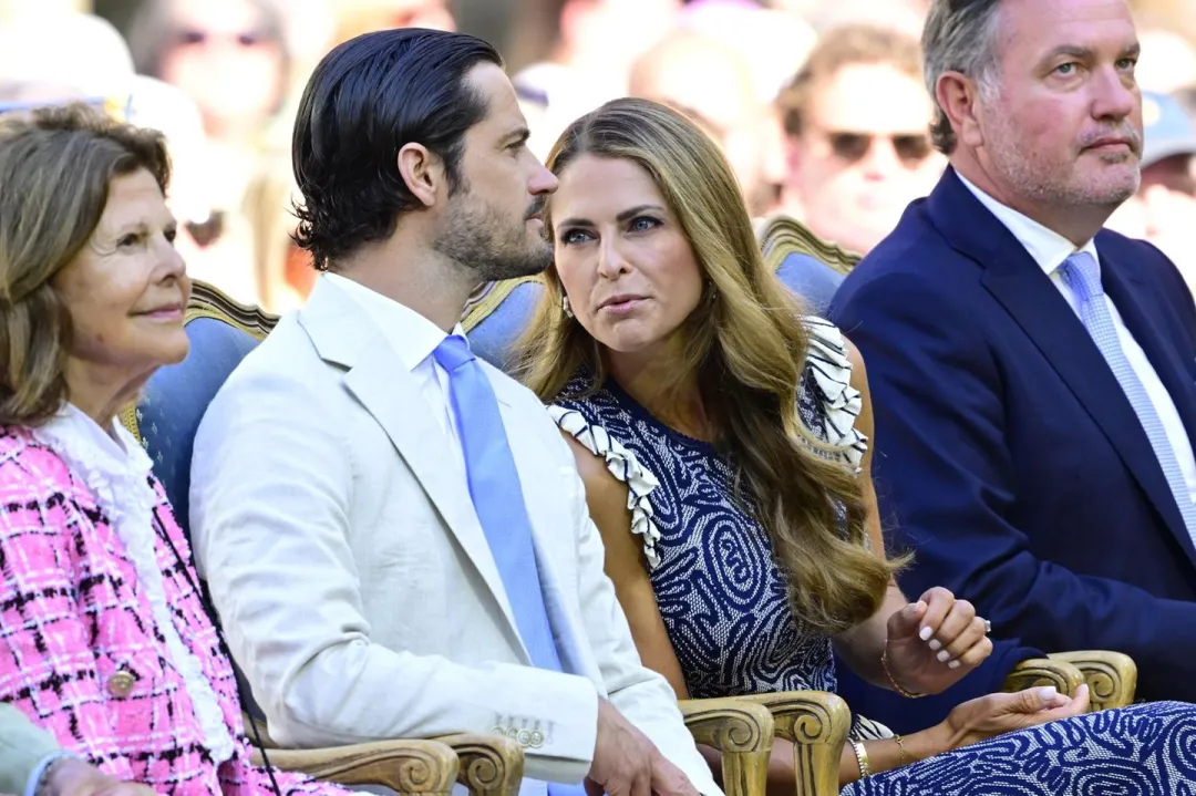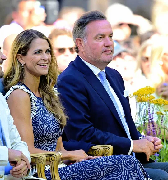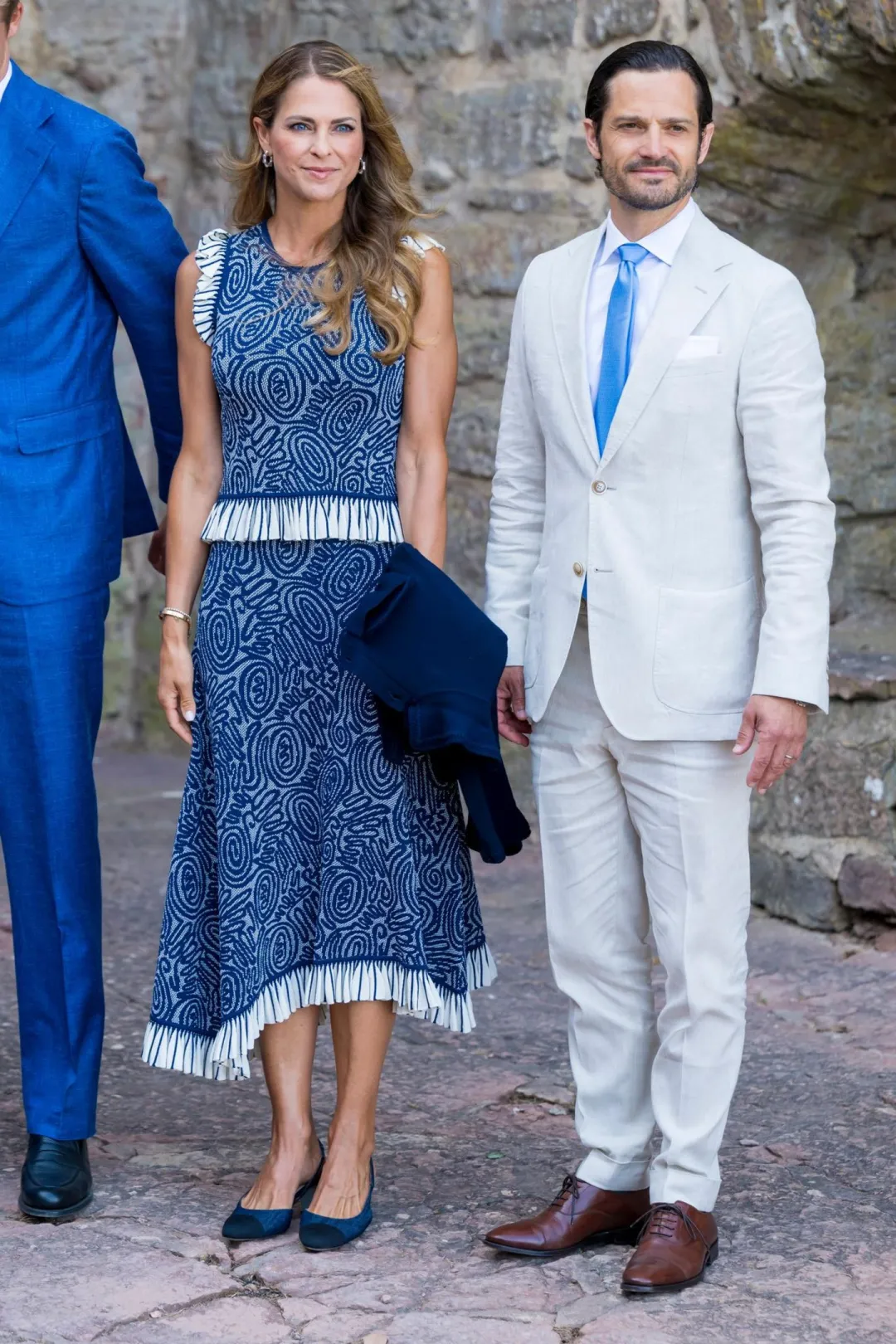 7月14日,现居住在瑞典🇸🇪的玛德琳公主和老公奥尼尔一同出席姐姐维多利亚的生日庆祝活动。 全身上下美国品牌、法国品牌、意大利品牌均有——全套水墨提花裙装来自美国品牌Ulla Johnson,海军蓝外套🧥则来自法国小众品牌Sézane,最后用意大利品牌Marzio的拼接露跟款高跟鞋呼应,整套LOOK优雅沉静~ #王室时尚[话题]# #王室时尚穿搭[话题]# #欧洲王室[话题]# #瑞典王室[话题]# #玛德琳公主[话题]# #瑞典玛德琳公主[话题]# #瑞典王室同款[话题]#