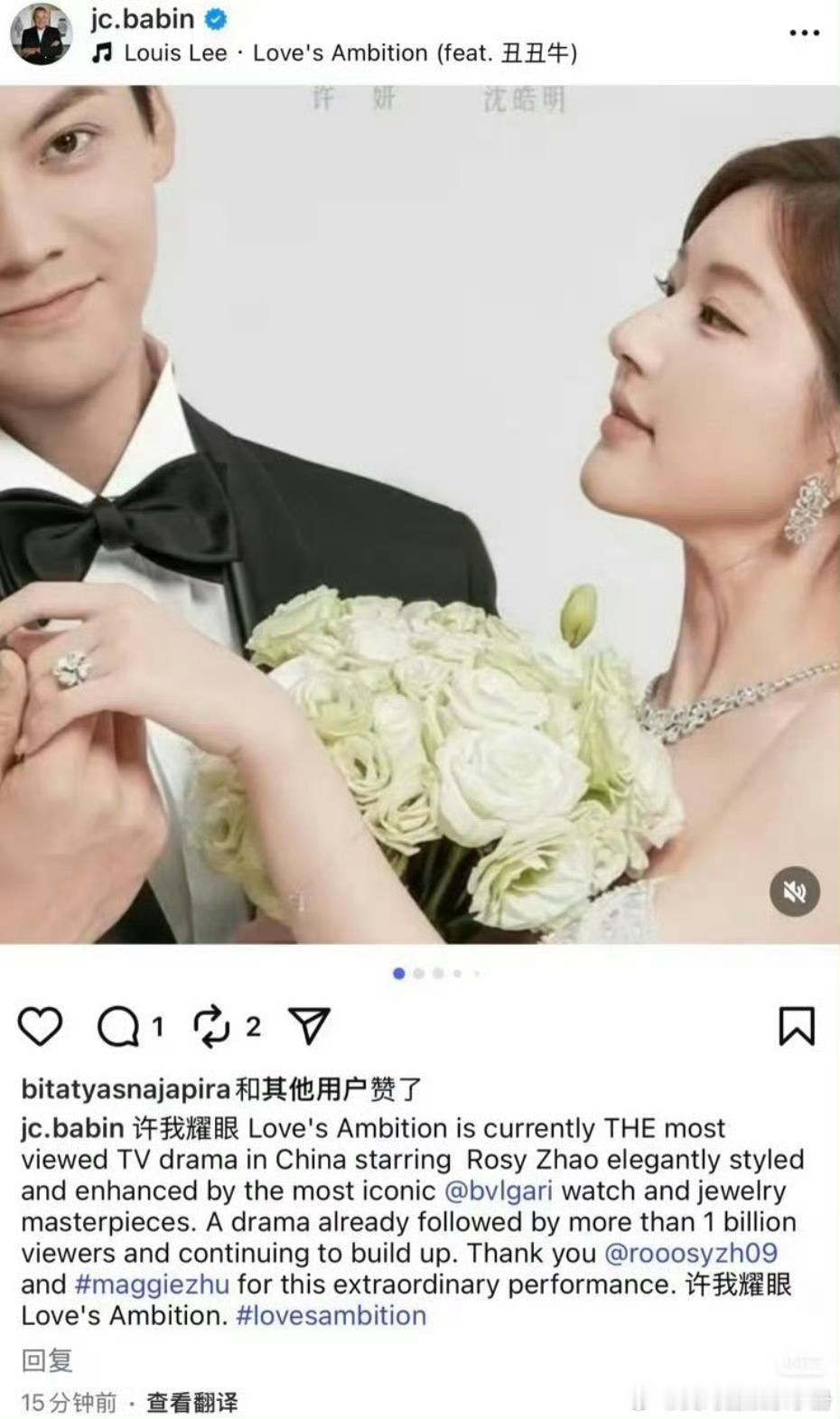 宝格丽全球CEO发布ins提到许我耀眼,并且感谢赵露思精彩表演,有效播剧🔥 ​​​