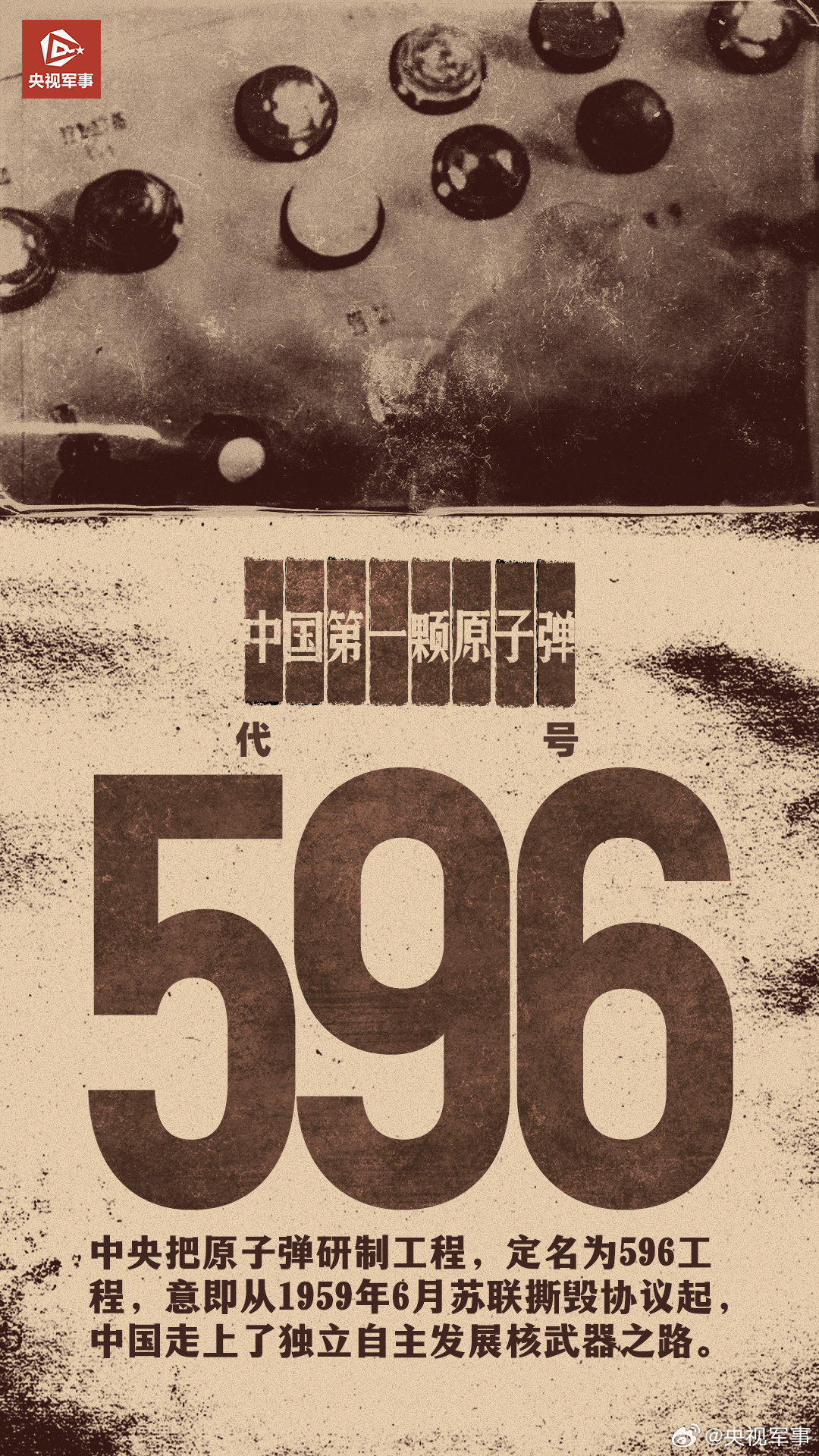 【#这些硬核数字密码你知道吗#?】今天是#中国第一颗原子弹爆炸成功61周年#。当年,中央把原子弹研制工程定名为“596”工程,意为从1959年6月苏联撕毁协议起,中国走上了独立自主发展核武器之路……原子弹爆炸成功的背后,还有哪些“神秘代号”值得铭记?一起来看↓(央视军事)