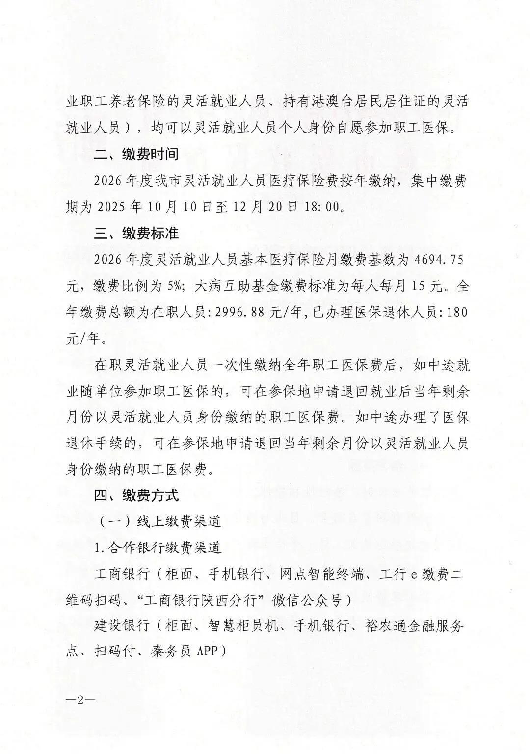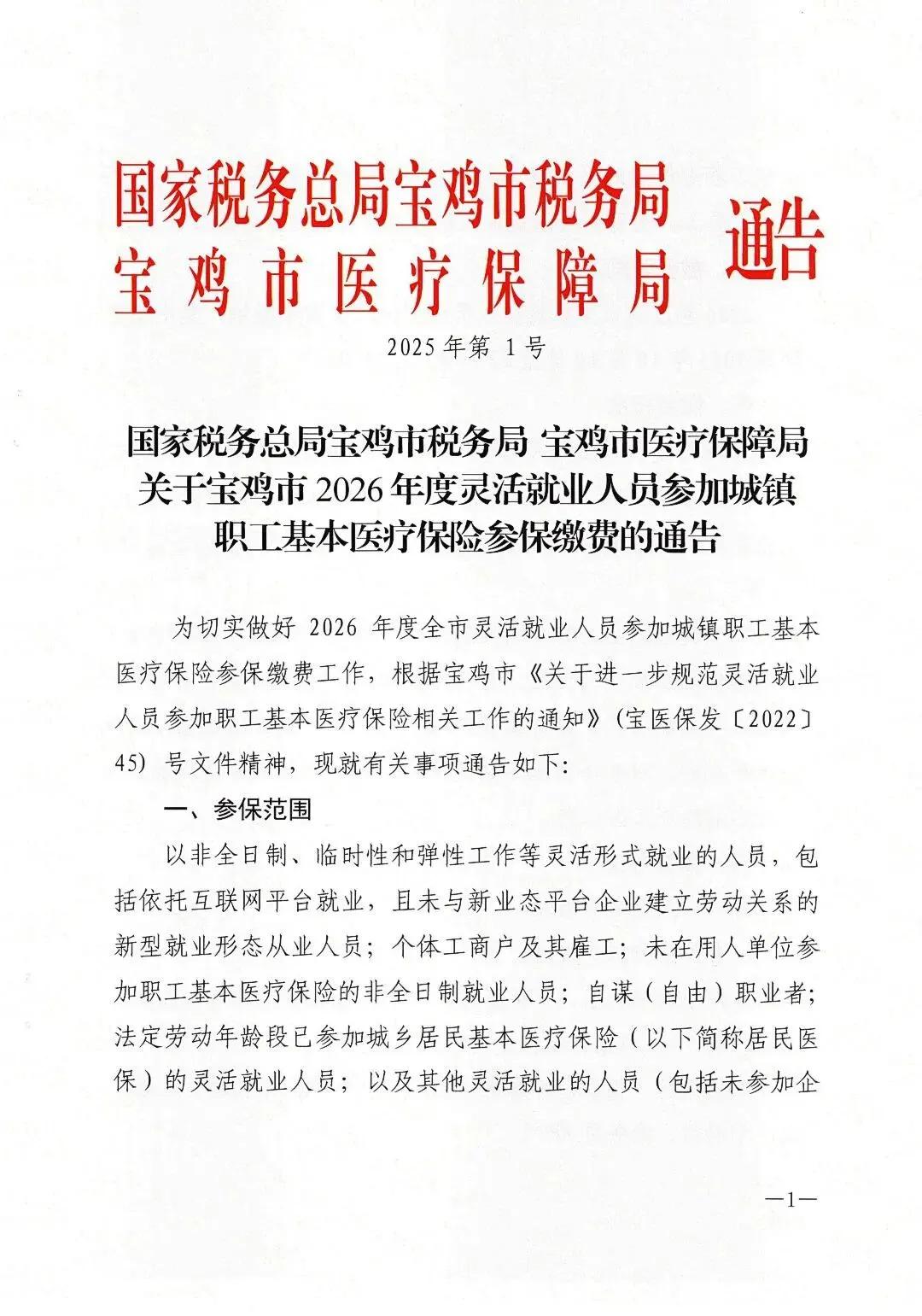 宝鸡市2026年度灵活就业人员参加城镇职工基本医疗保险参保缴费通告