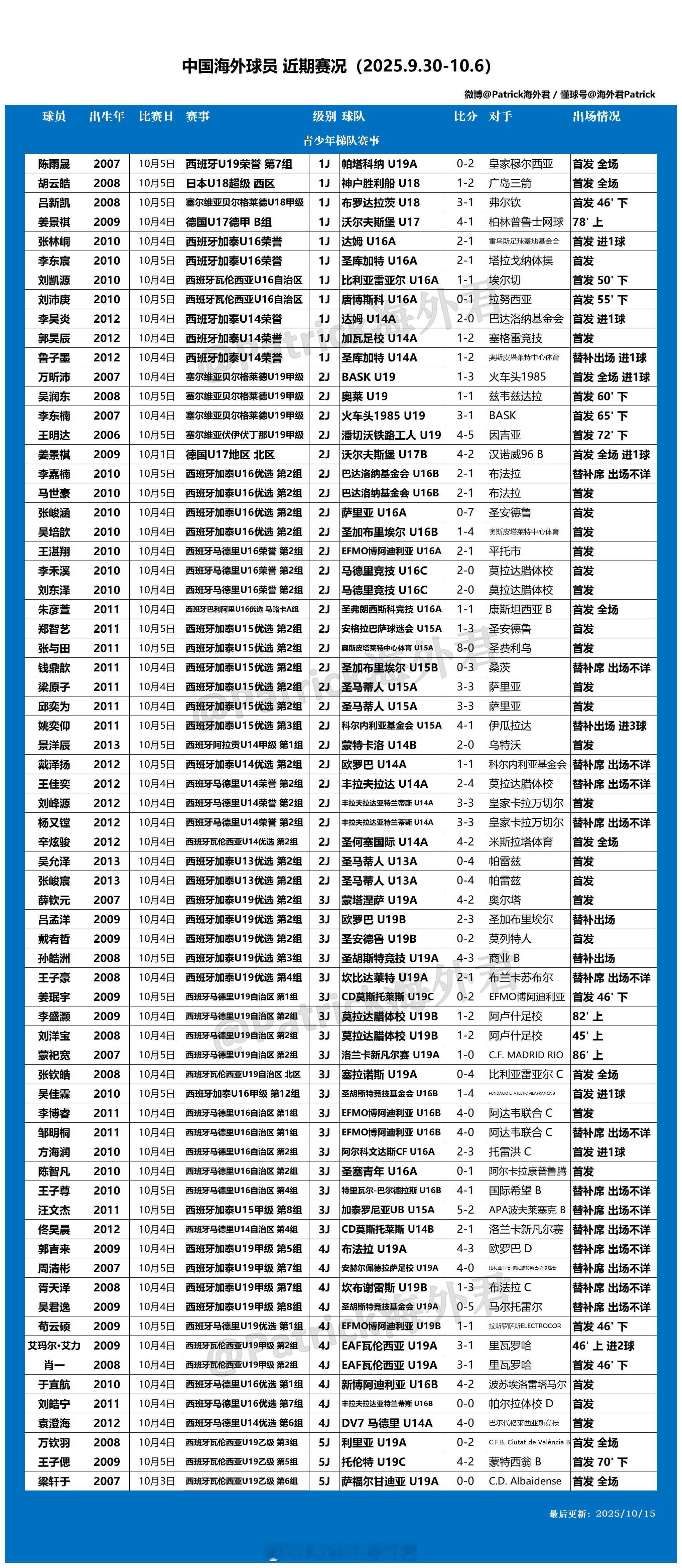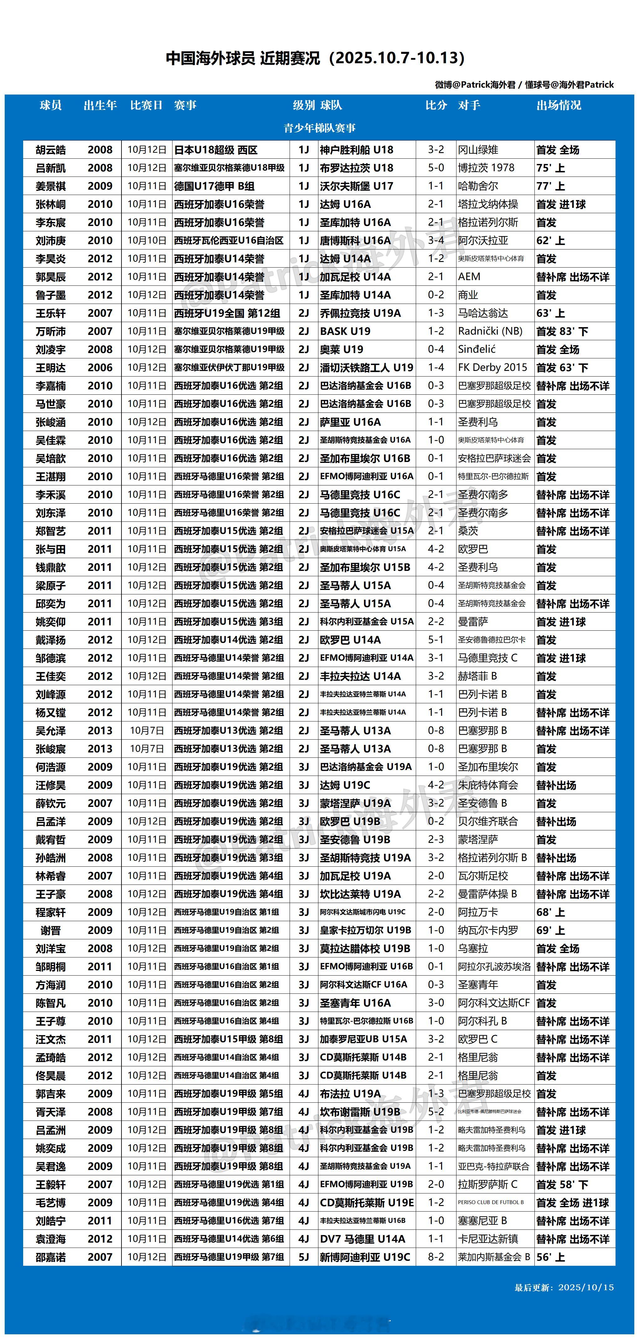 留洋周报海外球员比赛一览(2025年9月30日-10月13日)