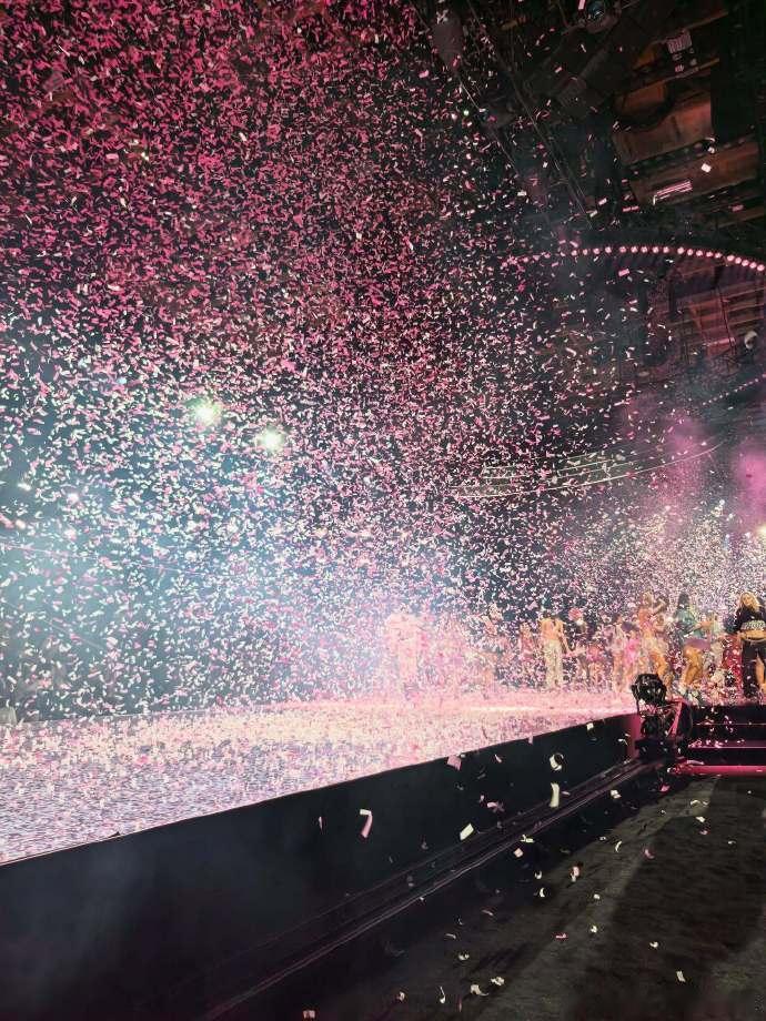 杨幂ins晒维秘现场彩带太浪漫!彩色的彩带、华丽的秀场,再加上她的灵动身影,