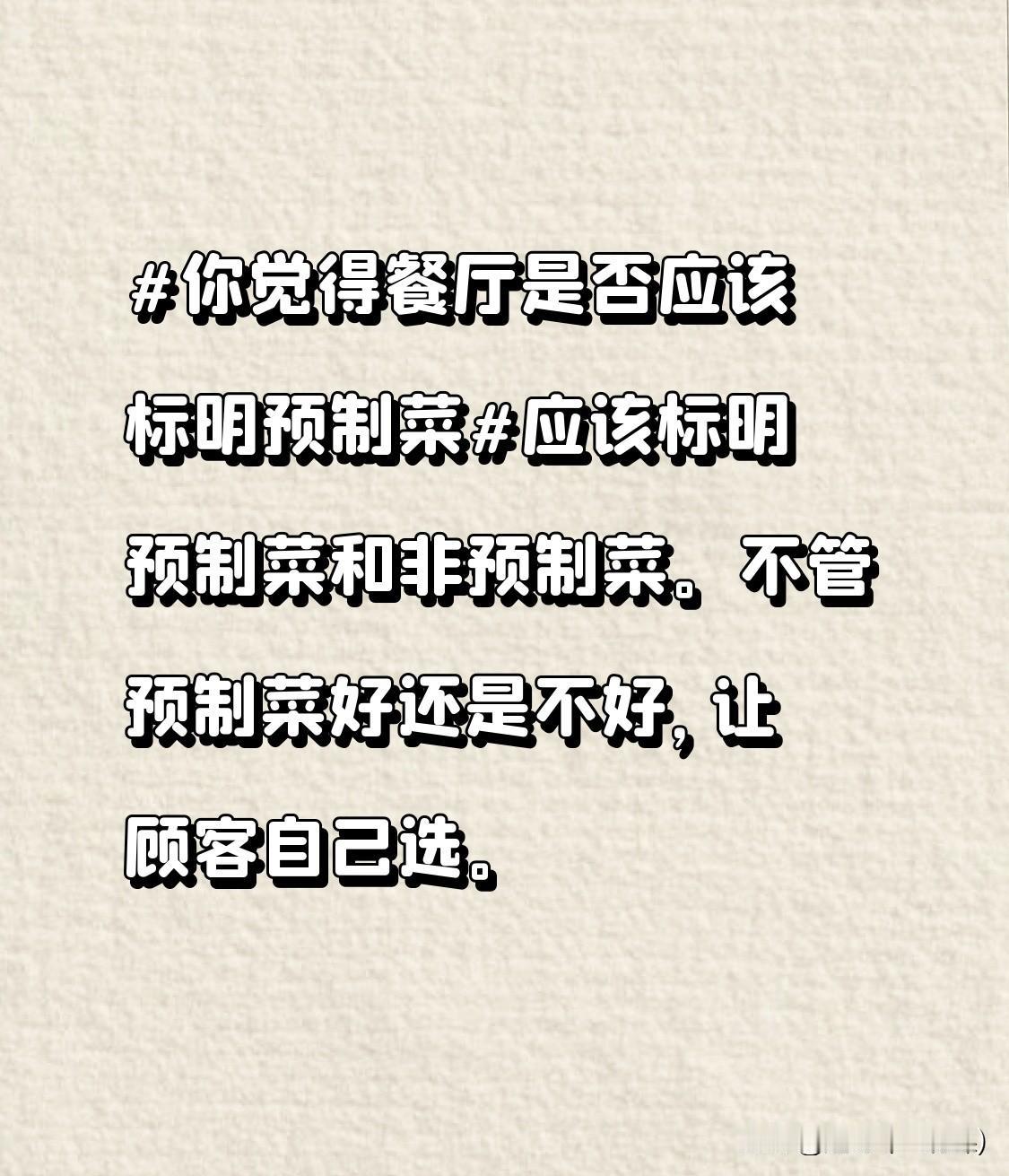 你觉得餐厅是否应该标明预制菜应该标明预制菜和非预制菜。不管预制菜好还是不好,让顾
