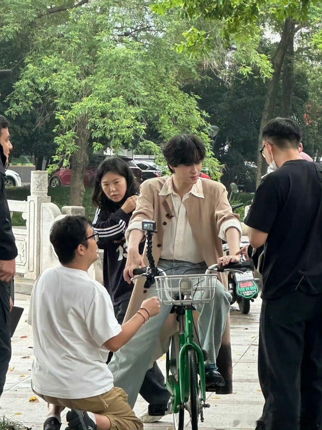 展轩扬州拍摄被偶遇网友扬州偶遇展轩拍摄 网友扬州偶遇展轩拍摄!单车少年衬衫配大衣,生图状态超能打,清爽帅气瞬间戳中人心,画面太有氛围感。