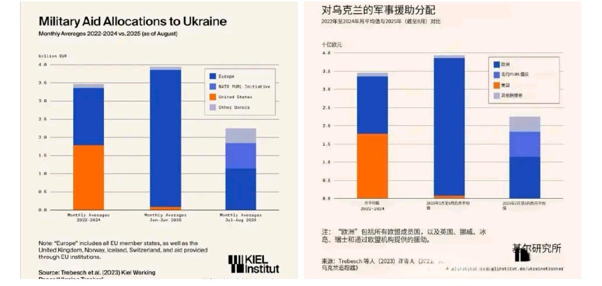 欧洲对乌克兰的军事援助下降了57% — 基尔经济大学 ▪️与2025年1月至6月相比,援助规模下降了57%。 ▪️即使考虑到北约通过PURL(乌克兰优先需求清单)项目从美国采购武器给乌克兰,欧洲的援助规模仍明显减少。