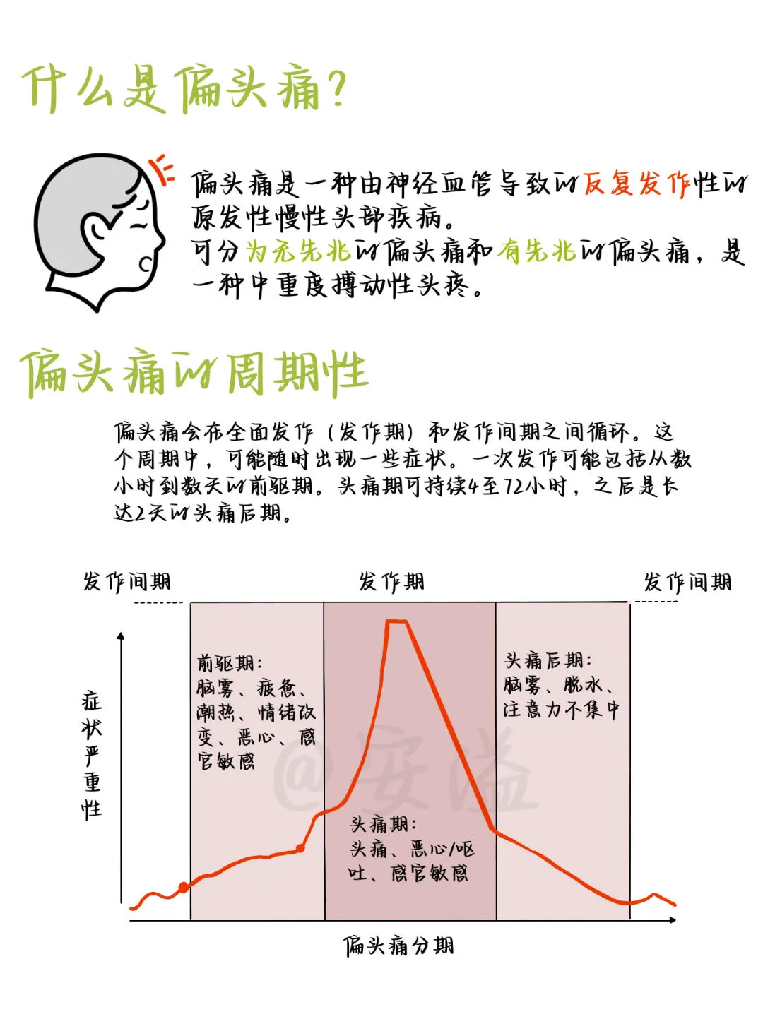 😵💫家人们,偏头痛真不是作,痛的时候就像电钻在太阳穴哒哒哒…整个世界都在旋转。 👀很多人想着忍忍就过去了~ ❌哒咩!千万不可以,偏头痛会越!忍!越!痛! ✅要在刚刚有感觉就吃药,抑制住头痛魔鬼 轻度可以一开始疼就赶紧找个安静避光的地方休息,或者选择布洛芬这一类非甾体类止痛药 中重度则可以选择曲普坦类特异性药物,如佐米曲普坦口腔崩解片,口腔黏膜吸收起效,比普通的效果快一些。 医学生绘本偏头痛科普绘本偏头痛缓解
