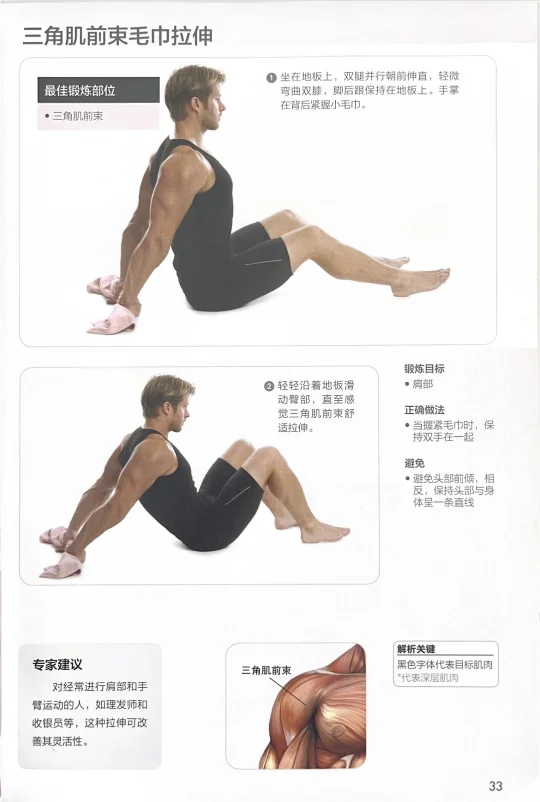 宝子们!是不是总觉得肩部紧绷、手臂活动受限?试试这个三角肌前束毛巾拉伸,简单两步,拯救你的僵硬肩颈~