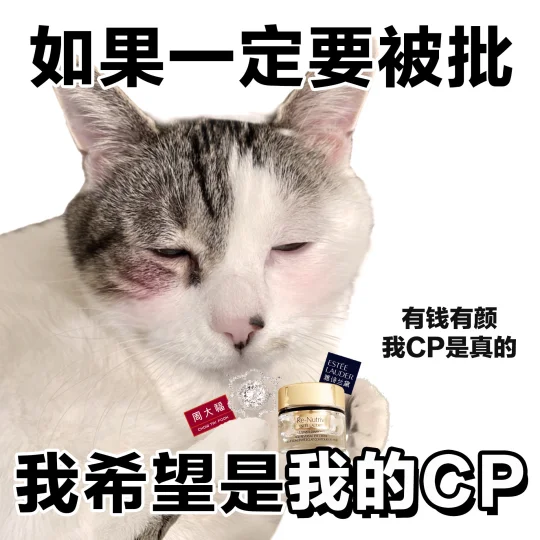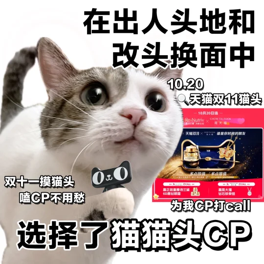 如果吃亏是福,我希望是周大福[得意R] 如果上班会狗带,我希望是雅诗兰黛[抽泣R] 如果生活让人昏头,我希望是猫猫头[嘻嘻R] 如果一定要被批,我希望是我嗑的CP[色色R] 在出人头地和改头换面中 选择了猫头CP~10.20🔍天猫双11猫头 一起打call啦~[派对R][派对R]