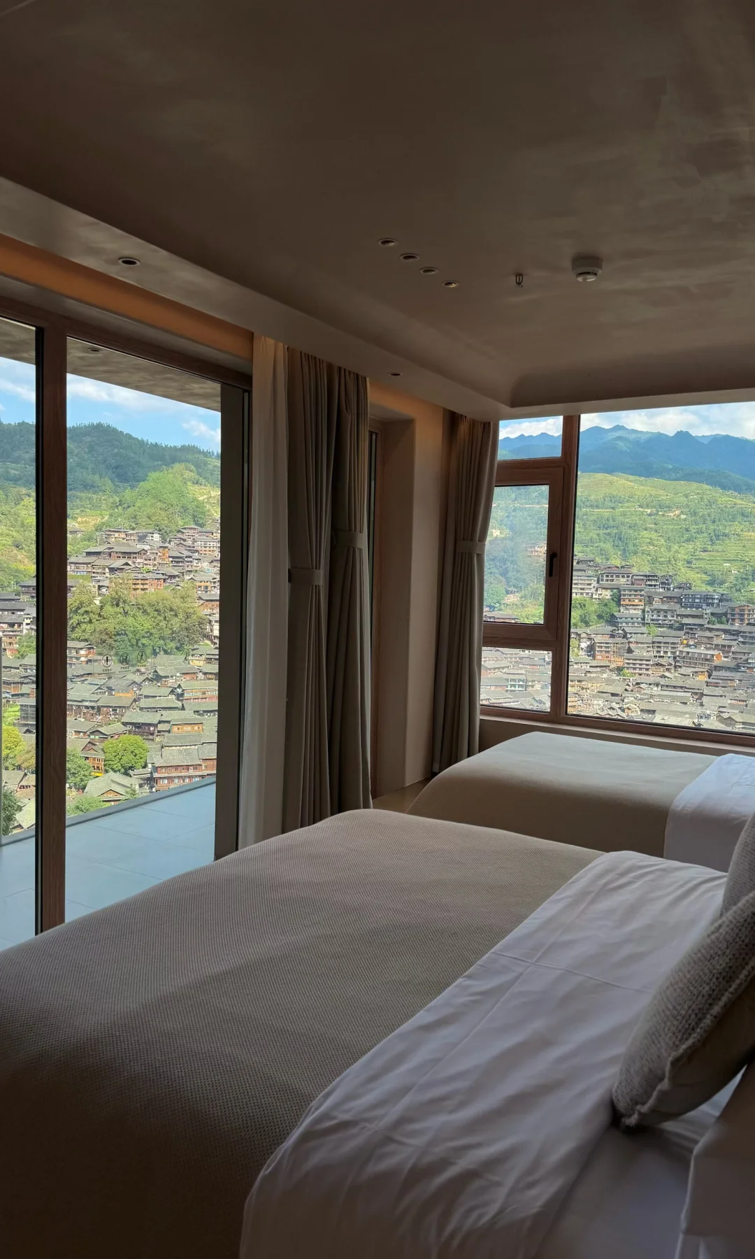 这次在苗寨住了三天,我们都住在观景台旁边的七封信·序言Villa酒店,位置比观景台还要高,还要好,不管是一楼大厅的窗户,还是房间的落地窗,再到楼顶露台的屋檐,真的都非常好看又出片,而且基本没啥人,想怎么拍就怎么拍[萌萌哒R][萌萌哒R][萌萌哒R][萌萌哒R]