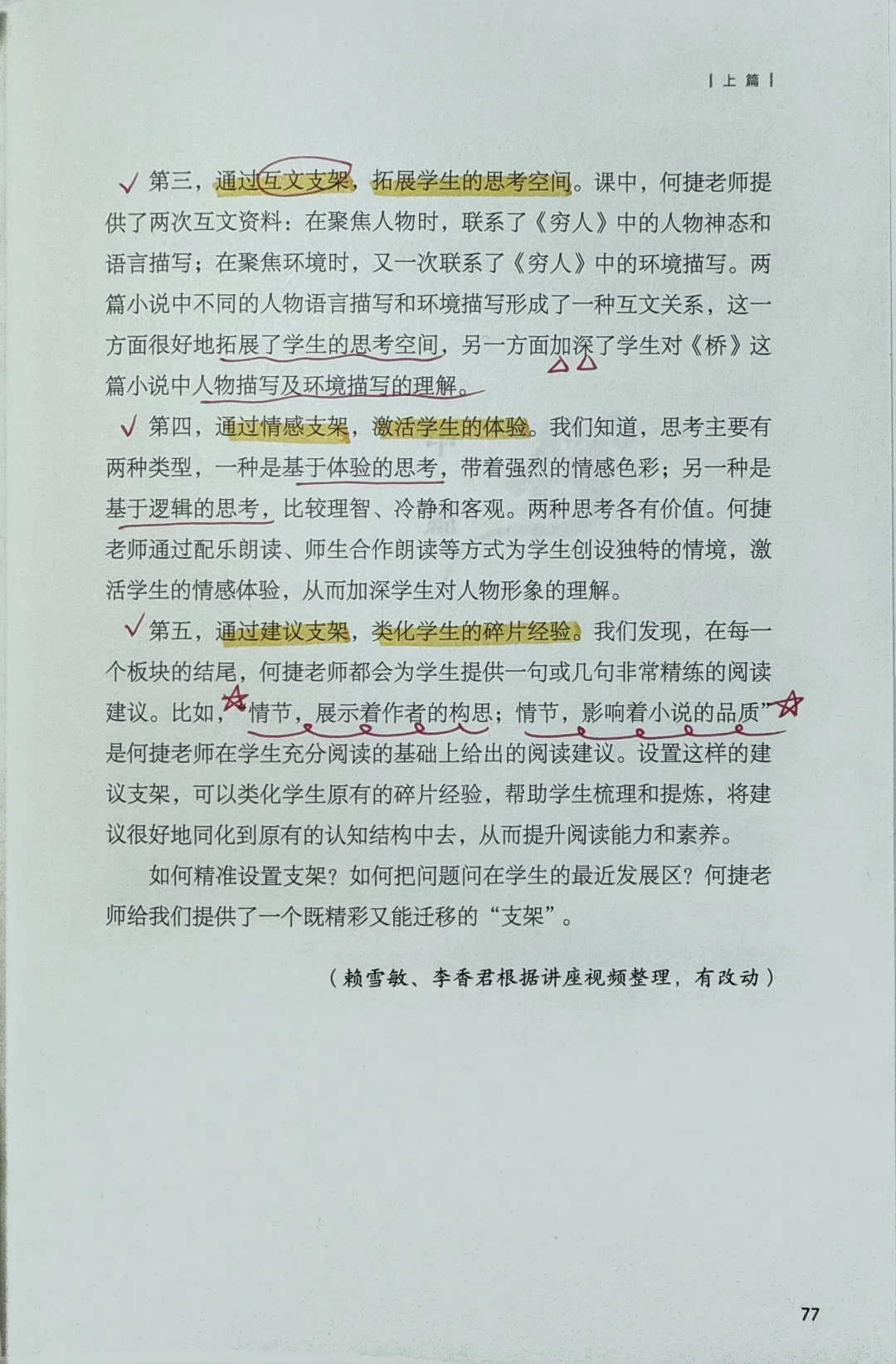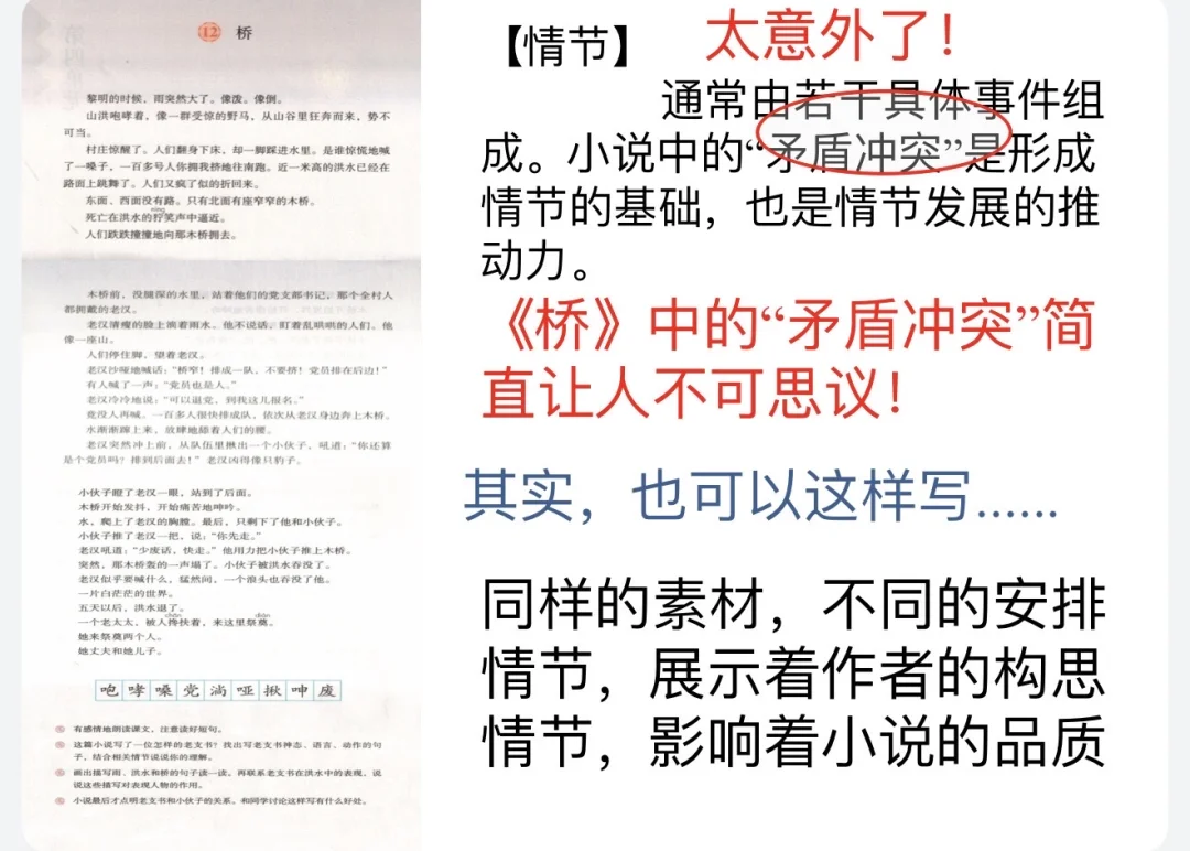 ‼️最最有参考价值的一点是,何捷老师将原本对学生很陌生的小说体裁简单化,将顺序进行了调换,从孩子们最熟悉也最好理解的“人物”入手,再过渡到“环境”,最后过渡到最难的“情节”部分,从简单到难,孩子们易于接受,课堂实施效果极好!具体教学环节然后再一一道来~