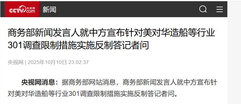 10月14号,中国正式开始反制,对美国的船运企业还有美国制造的那些船只,收港口特别服务费。 这可不是咱们先挑的头。 早在今年4月,美国就先搞了个所谓的“301调查”,当时就放话要对中国的船舶额外加钱,玩起了“只许州官放火”的套路。 美方当时宣称要从10月14号起,对中国公司拥有、运营的船舶,还有中国造的船舶加收港口费,起步就是每净吨50美元,之后逐年涨到140美元。 按一艘10000标准箱的集装箱船算,美方初期收的费用就超过100万美元,到2028年更是要翻好几倍。 可他们压根没提,自己的造船业早就跟不上趟了,去年美国船厂造的商船还不到10艘,中国造的却超过1000艘,全球53%的造船订单都攥在咱们手里。 更讽刺的是,美国1990年就从全球造船市场退出了,那会儿中国造船量才占全球2.5%,现在倒把自己产业不行的锅甩给中国,这逻辑也是没谁了。 咱们的反制可不是瞎来,全是按规矩办事。交通运输部当天就出台了办法,对涉美船舶收特别港务费,从每净吨400元人民币起步,逐年涨到1120元,换算下来和美方标准基本对等,这叫有理有节。 更绝的是认定标准,只要美国企业、个人直接或间接持股25%以上的船舶都算,一下就把华尔街那些藏在背后的资本网了进来。 要知道美国航运资产里40%都是华尔街掌控的,摩根大通一个公司就有160艘船,这些都得乖乖缴费。 克拉克森研究算了下,受影响的船舶得有3120艘,占全球船队3%,这力度可比表面看大多了。 而且咱们还留了后手,把韩华海洋那几家美国子公司列了反制清单,这家可是造了美国一半符合《琼斯法案》的船,一下就掐住了美国造船业的脖子。 反观美国,自己搞的限制根本行不通,全球航运公司该找中国造船还找中国,地中海航运在美方宣布加费后,照样向中国订了12艘新船。 毕竟谁都不傻,美国商船只占全球不到1%,真要强制用美船,美国的大豆、能源都运不出去。 最有意思的是,美方这招纯属搬起石头砸自己的脚。 世界航运理事会算过,中美航运摩擦会让中国输美集装箱运费涨600到800美元,美国消费者每年得多掏300亿美元,这不就是变相给自家通胀添火吗? 美国农业界早就急了,今年前8个月中国买了他们2000多万吨大豆,占美国大豆出口的三成多,他们一边盼着咱们多下单,一边又在海运领域下死手,生怕中国船把大豆运快了似的。 美国总想靠着霸权两头占便宜,既想让中国当他们的农产品市场,又想把中国排除在全球产业链之外,这种如意算盘打得太响,全世界都能听见。 可事实摆在这,中国造船业的地位不是靠谁让来的,是靠技术和性价比拼出来的;反制措施也不是意气用事,是用规则对付不讲规则的人。 美国那边呢,一边盼着咱们多买他们的大豆,一边又在科技、海运这些领域下死手,想两头占好处。可这种既要掠夺市场又要遏制发展的套路,根本不符合常理,也撑不了多久。 毕竟全球产业链早就是你中有我我中有你,真要把路走死了,最后吃亏的还是自己。 贸易霸凌这套老把戏,在越来越讲规则的全球市场里根本行不通,想两头占便宜最后只会把自己的路走窄,这或许就是最实在的教训。