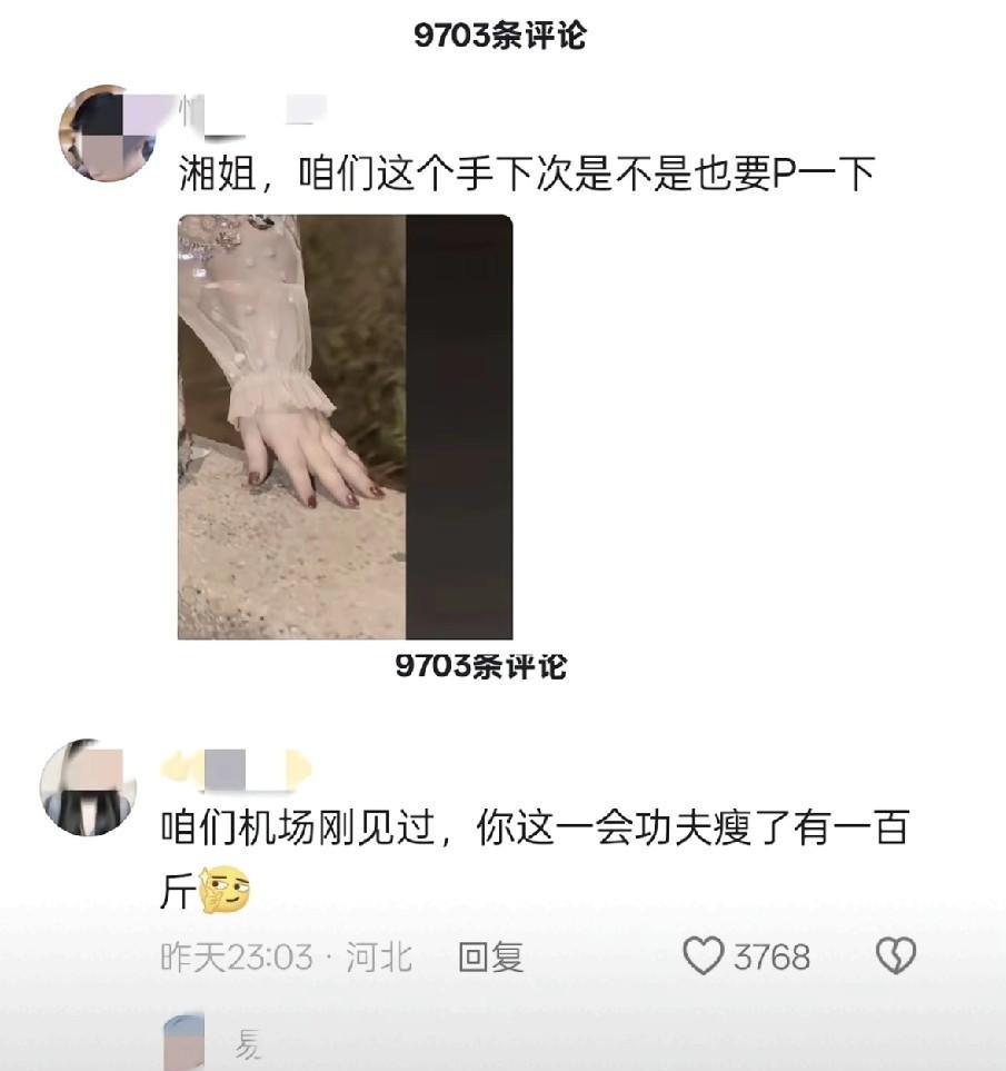 “李湘的天塌了[捂脸]”!李湘自从给她的宝贝女儿在英国过生日回来后,又在抖音上发了几张美照。结果万万没有想到就是这几张美照把她推上了风口浪尖,引起了一众网友的热议。 有的网友说:咱们在机场刚见过,这么快你一会功夫就瘦了100斤? 有的网友说:湘姐,你不要沉迷于抖音美颜,要正视真实的自己。 ………… 要我说啊,这届网友是真敢说,不怕把人气死呀! 其实我觉得人家也没做啥,男人都爱美,何况女人呢!人家美颜一下就美颜一下嘛,何必直筒筒的指出来,这让她情何以堪呀[尬笑]。