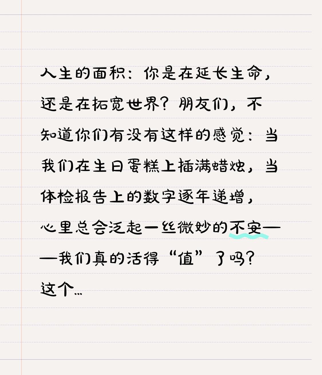 人生的面积:你是在延长生命,还是在拓宽世界? 朋友们,不知道你们有没有这样的感