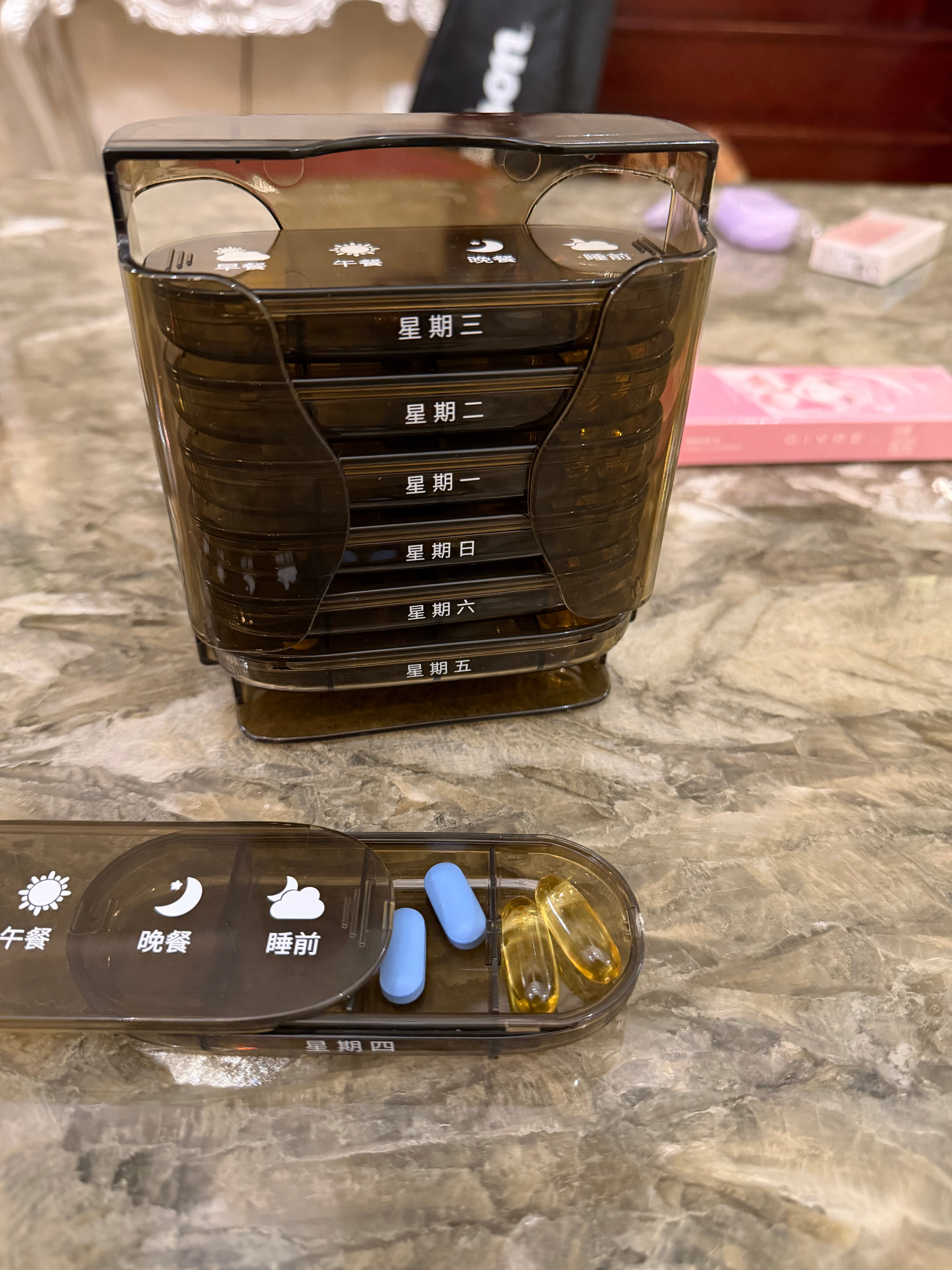 小李飞车 我媳妇说男人四十以后得多运动多保养,买个球拍打网球也就算了,昨晚上给我弄了个药盒往里装药,让我每天一盒必须都得吃完,唉,男人好难[可怜]