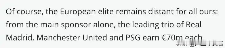 米兰意甲第一!在不计算球衣(技术)合作伙伴的情况下,比如是米兰的球衣合作伙伴是彪马,球衣赞助费不计算在内,仅考虑商业赞助商,下赛季米兰的总赞助金额为4500万欧元,超越尤文图斯的3600万欧元与国际米兰的4100万欧元,成为意甲第一。米兰球衣是意甲联赛“最贵球衣”,因为其他俱乐部已经完成了签约。因此,AC米兰将在这个特殊排名中位居榜首。 这个榜首其实真的没啥好高兴的,意甲联赛最具影响力的三支球队,球衣的赞助费竟然没有一个超过5000万欧元的,意大利足协还觉得自己做的非常好呢,一个愚蠢度接近东方某足协的存在,当然只是接近,超越是永远不可能超越的。 先解释一下米兰赞助费问题,昨天米兰确认与阿联酋航空续约,新合同将于2026年生效,为期五年,2031年到期。具体数字方面,从2026/2027赛季开始,AC米兰每年将获得3000万欧元加奖金收入。奖金为500至1000万欧元,固定部分就是3000万欧元。