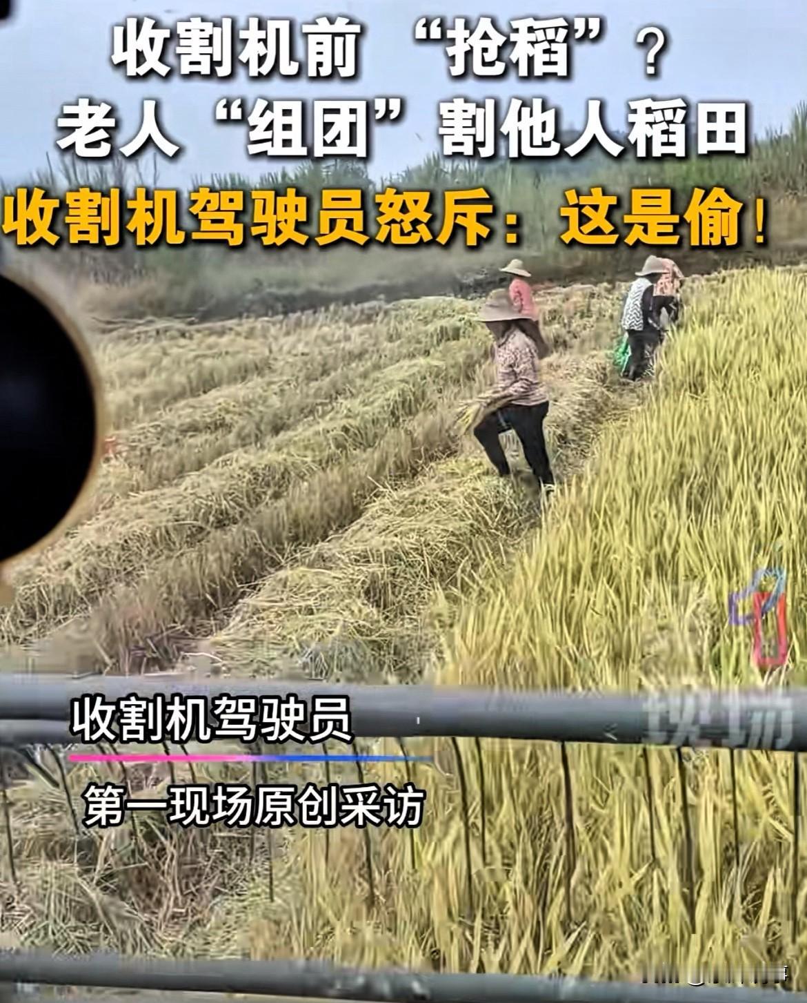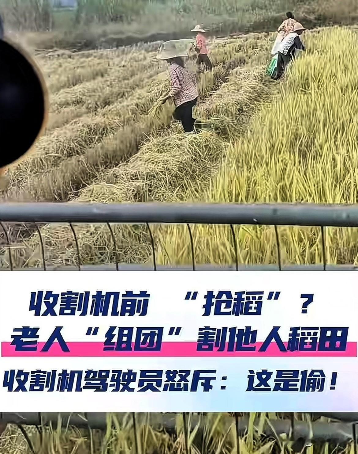 这不就是明抢吗?江西吉安,司机开着收割机去田里收稻子,却发现田里很多老人“抢稻子