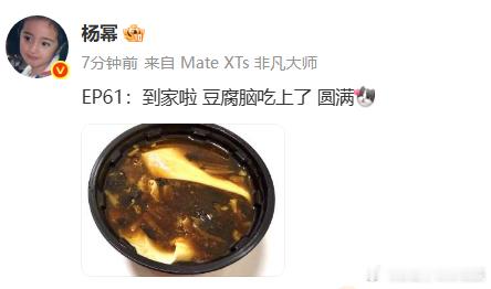 杨幂圆满回家吃上豆腐脑了杨幂也是咸豆腐脑 结束行程的杨幂圆满到家,吃上喜爱的咸豆腐脑,满足模样太有感染力!