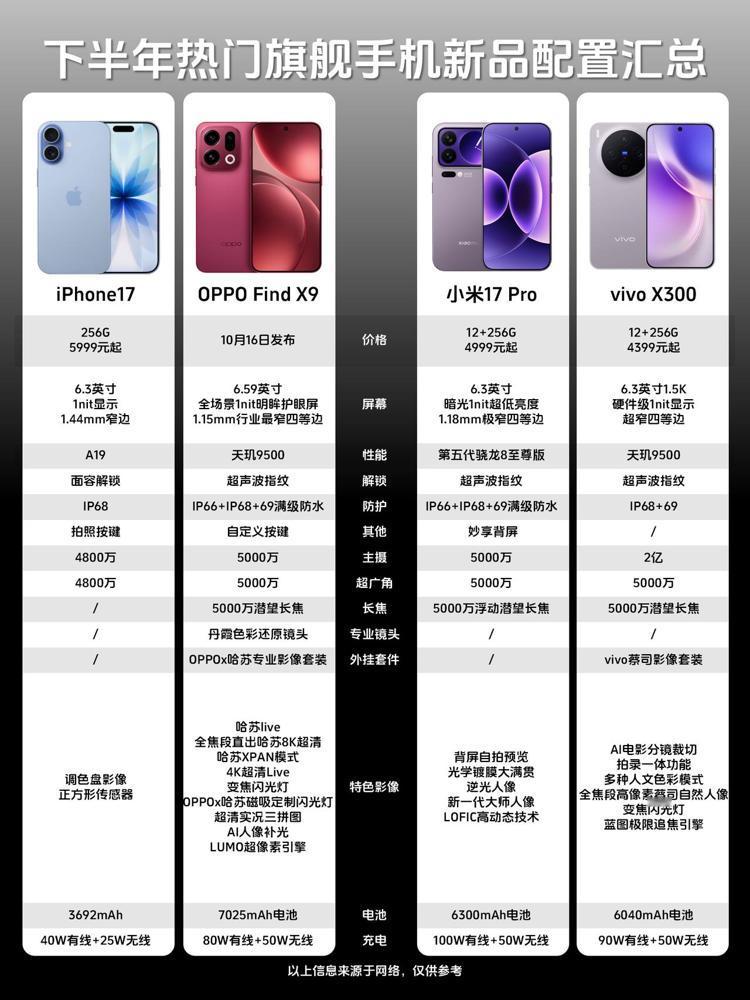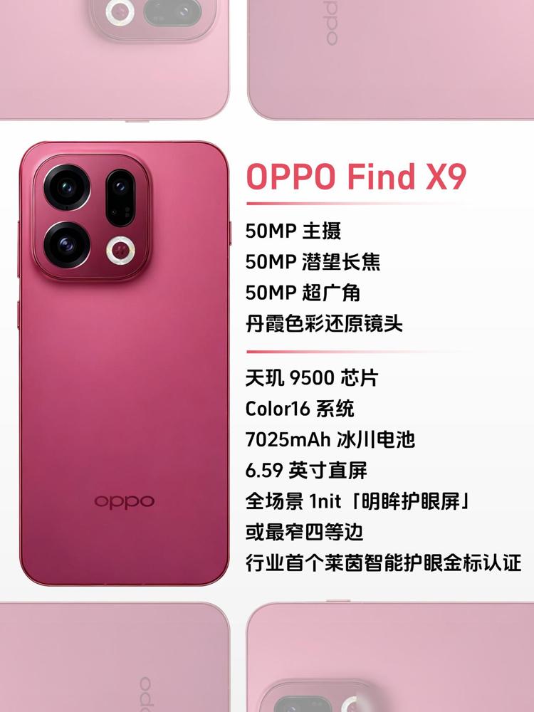 2025年的机圈卷成这样,手机厂商们都麻了,用户反而笑嘻了!最近刷到OPPO Find X9系列的配置爆料,真替厂商捏把汗——这堆旗舰新品一个比一个能打,用户挑花眼倒是真的。 就说影像这块,全系丹霞色彩还原镜头+潜望长焦,Pro版还是真2亿潜望,拍演唱会、拍远处的风景,终于不用羡慕相机党了。哈苏影像套装下放到标准版,还能加增距镜,普通用户也能玩出专业感,这波对爱拍照的人太友好。 续航更离谱,标准版7025mAh,Pro直接7500mAh,我这种出差党最懂——以前出门得带俩充电宝,现在手机本身就能扛一天半,安全感拉满。屏幕四等边窄边框,视觉看着舒服;1nit明眸护眼屏还拿了莱茵认证,晚上躺床上刷视频,眼睛也不酸了。 ColorOS16的流畅度和AI功能也实在,特别是AI一键闪记拿了吉尼斯,记个待办、整理聊天记录,几秒钟搞定,中年人的时间可太金贵了。3D超声波指纹、IP69防水这些细节也没落下,该有的都给齐活。 现在就等10月16日发布看价格了,要是定价合理,这机子估计得成爆款。手机厂商卷得越狠,咱们用户得的实惠越多,这波我站“卷王”!