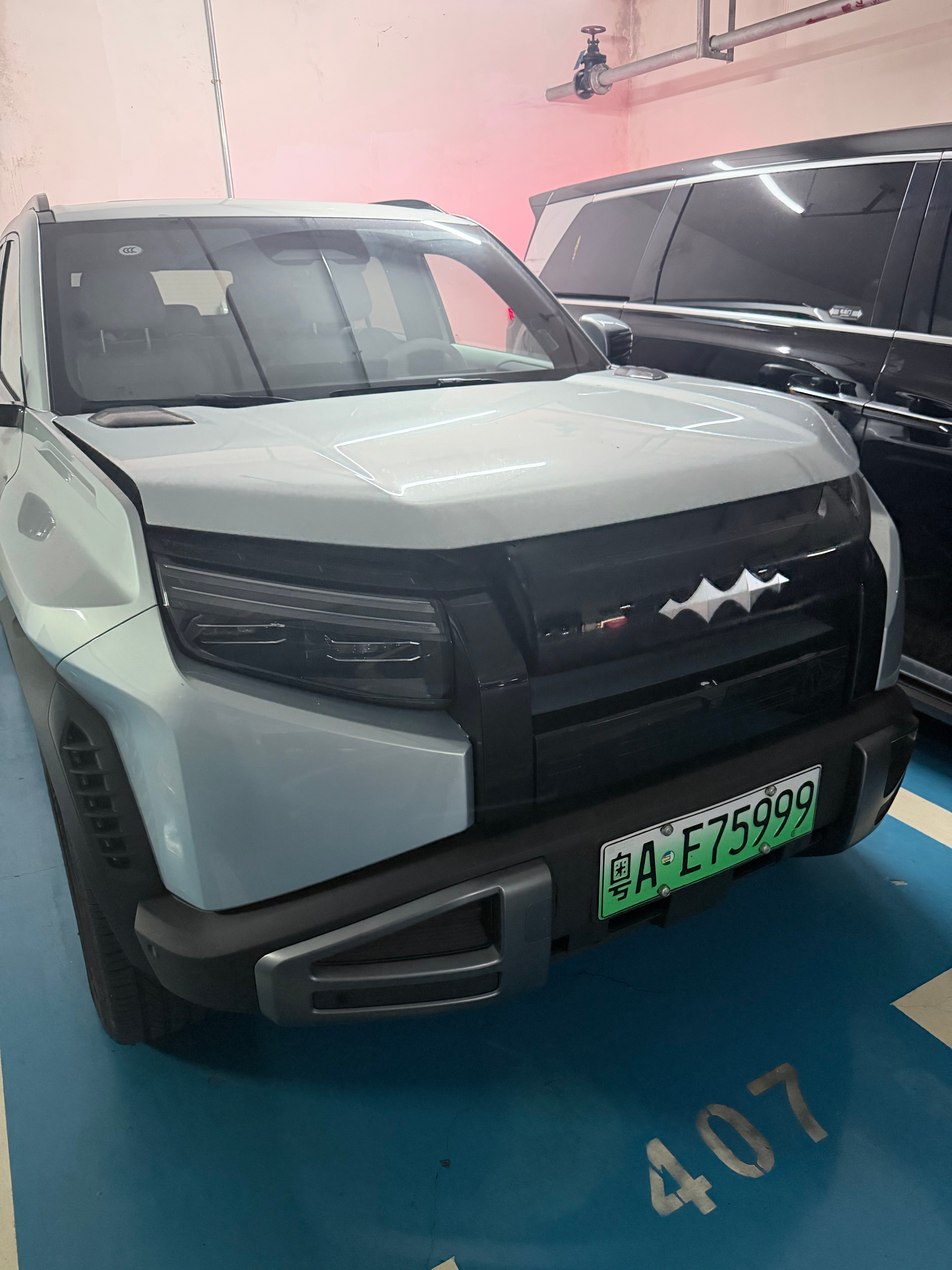 你们看我的停车环境就知道,开后备箱放东西不方便的,隔壁是我的腾势D9,每次取放物都得先把车开出来一点,再开尾门,包括我的钛3也是,也得稍微开出来一点,就很麻烦
