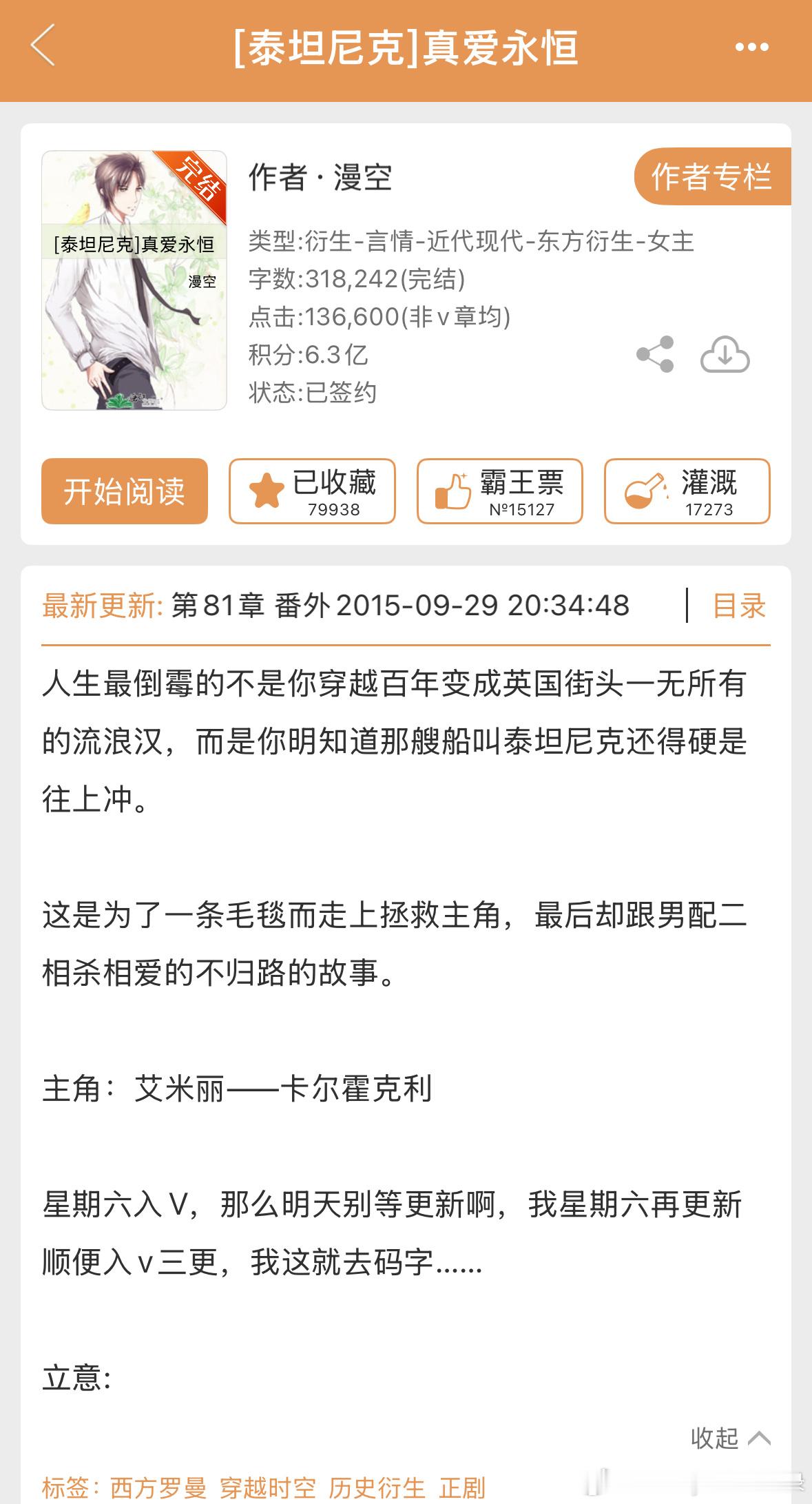 看完这篇小说又看了一遍《泰坦尼克号》电影,拍得真好,祝罗曼蒂克永远不死。