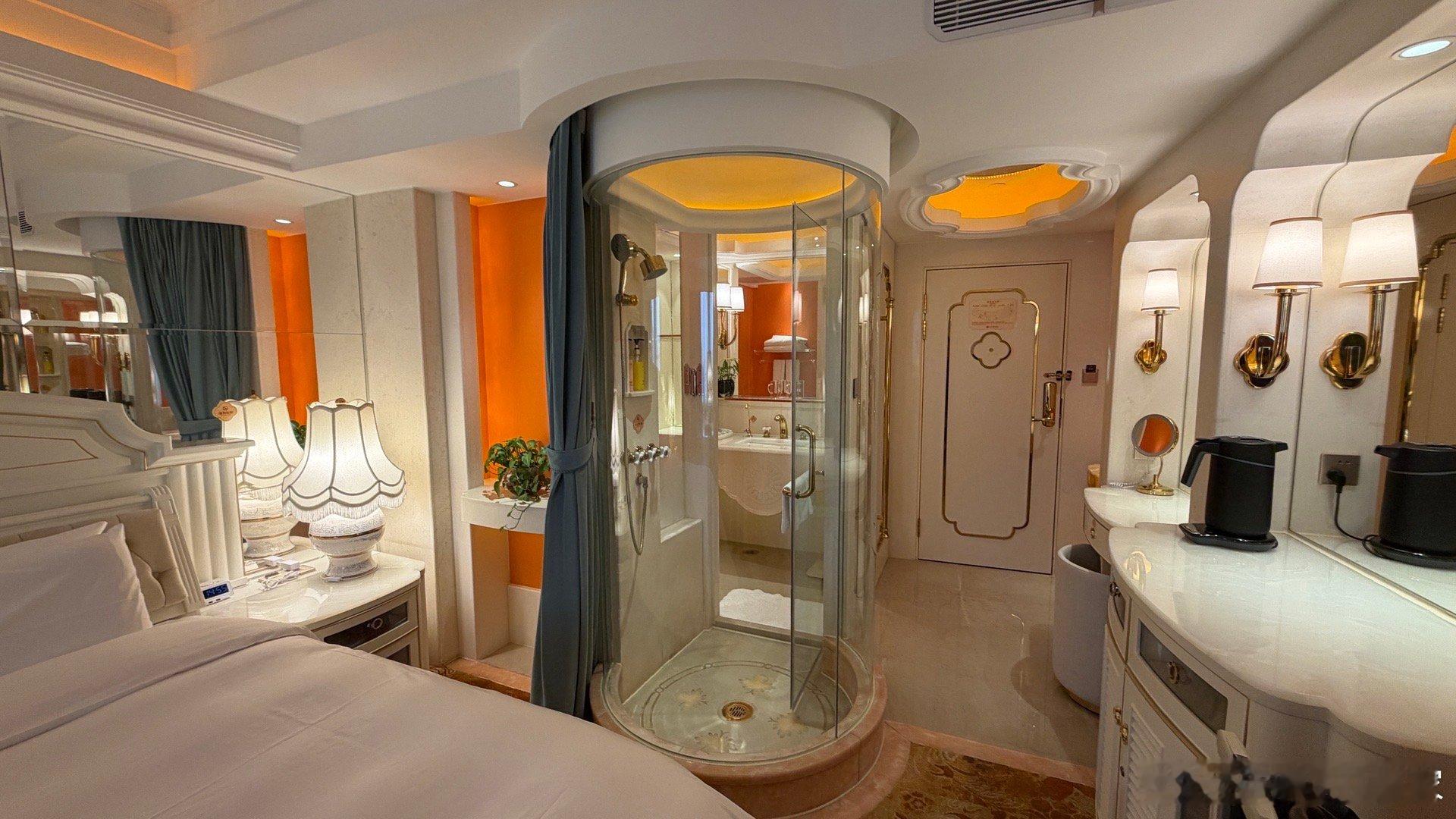 这次有写字台,上次没有写字台但有个条沙发,上上次是个美人榻,上上上次好像有个圆盆浴缸…[不愧是你]