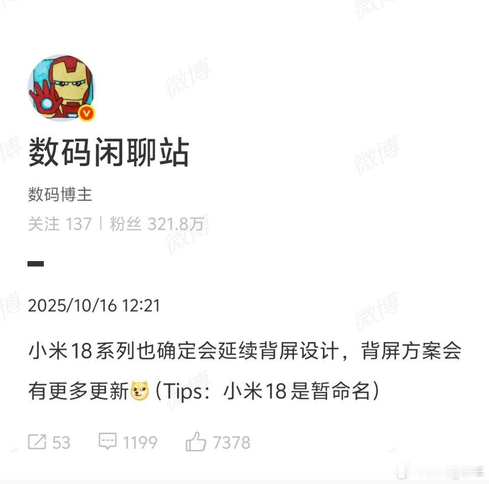 数码闲聊站最新爆料:小米18系列确认延续背屏设计,对于18系列,你最期待哪些升