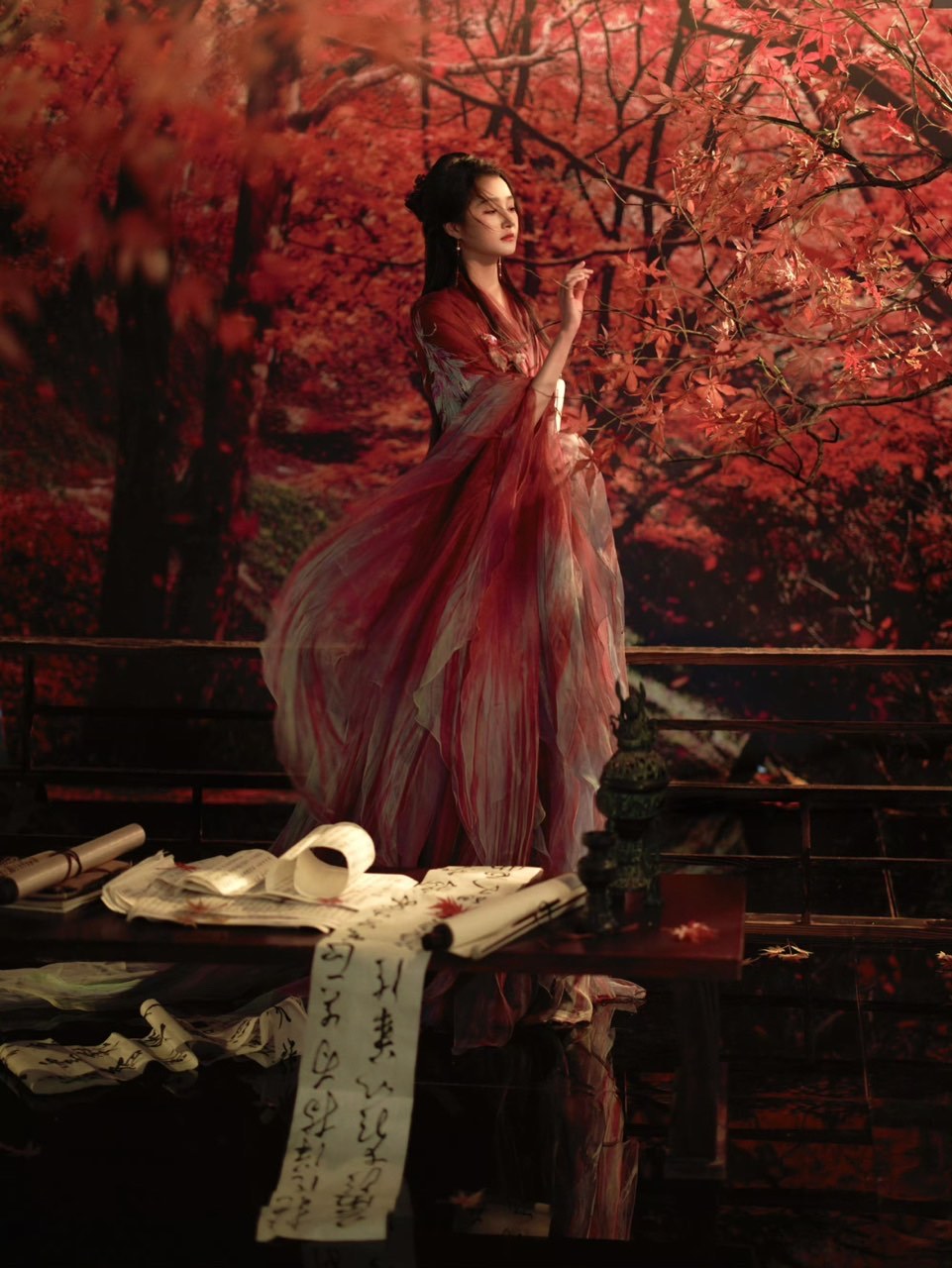 娱乐[超话]关晓彤红衣古风枫叶林里的关晓彤关晓彤红衣古风,美成这样!