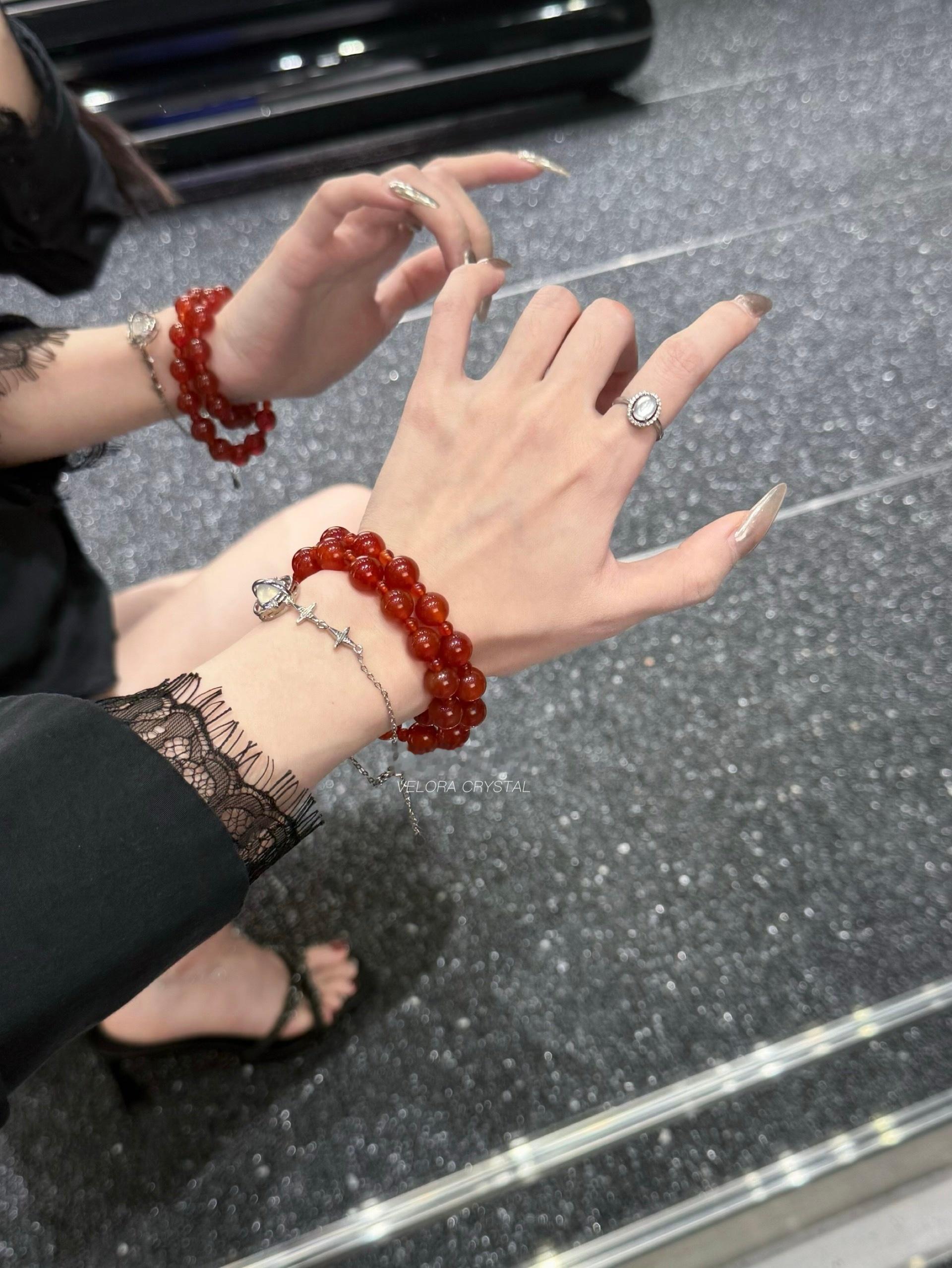 许我耀眼赵露思许妍同款红玛瑙双圈/单圈带上巨显白气场超强大女主人手一条水