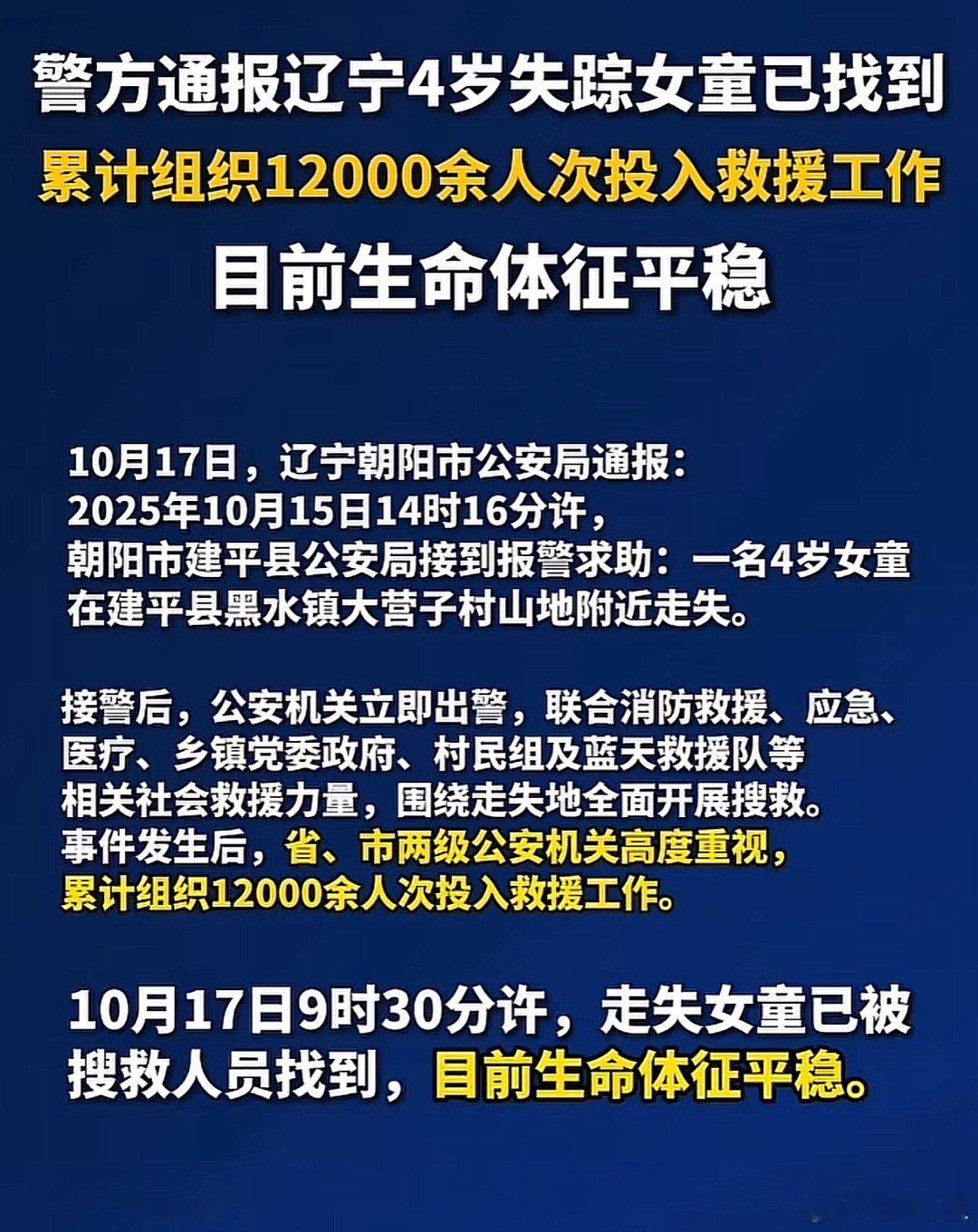 辽宁4岁女童找到了,上万人连夜搜寻,有个传说是在东三省根本丢不了孩子。