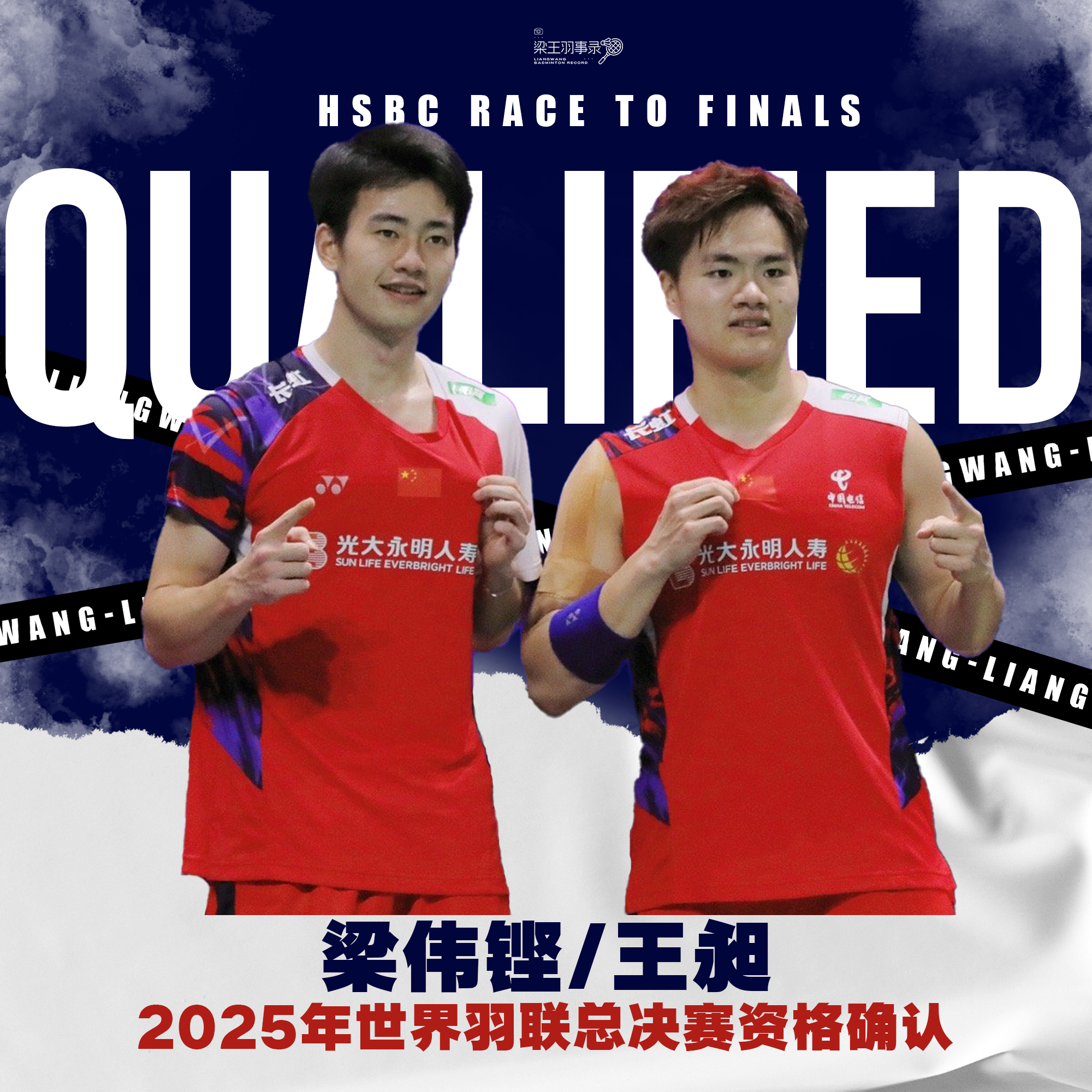 同时,梁王组合确认锁定2025世界羽联年终总决赛男双名额