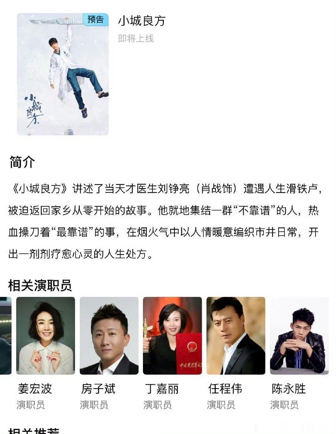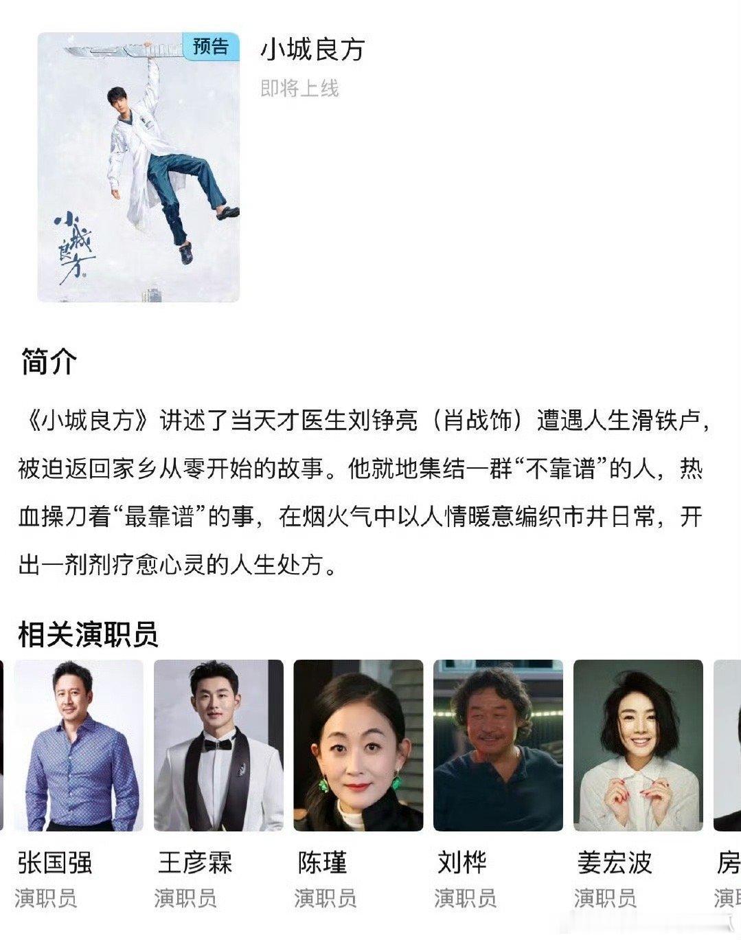 小城良方官宣阵容 小城良方特邀主演王彦霖