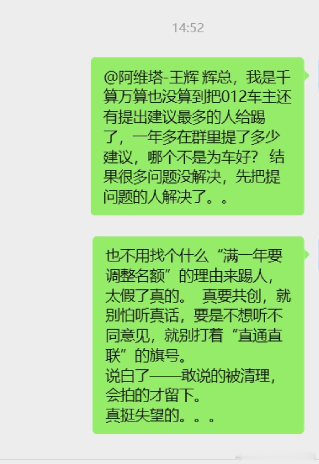 被移出阿维塔直连互通群的详细聊天记录