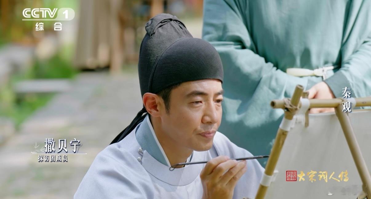 撒贝宁的墨水不会是口水吧 撒贝宁全能实锤!《宗师列传大宋词人传》无实物画画环节,一边听描述一边把毛笔放嘴里,调侃墨水是口水太贴切,离谱又好笑还画得超准!