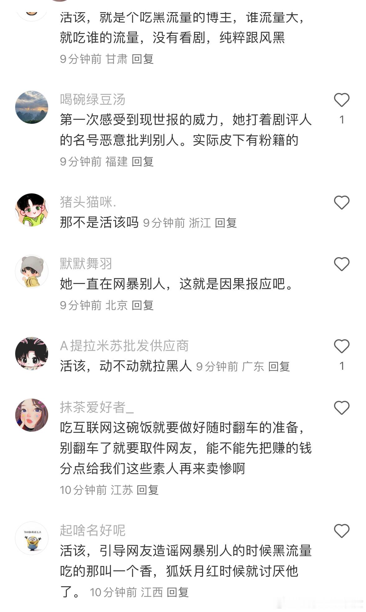 一个博主发杉树终于翻车了,评论区一个小时不到就有好多家剧粉纷纷表示大快人心,有种讨厌的人终于被人制裁的快感,吃潶流量终会被反噬。