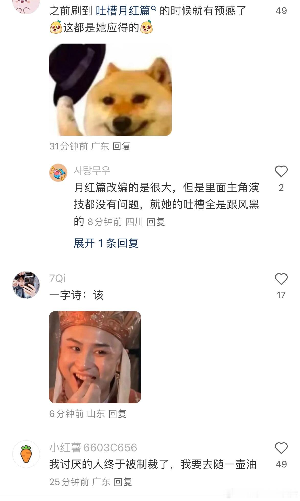 一个博主发杉树终于翻车了,评论区一个小时不到就有好多家剧粉纷纷表示大快人心,有种