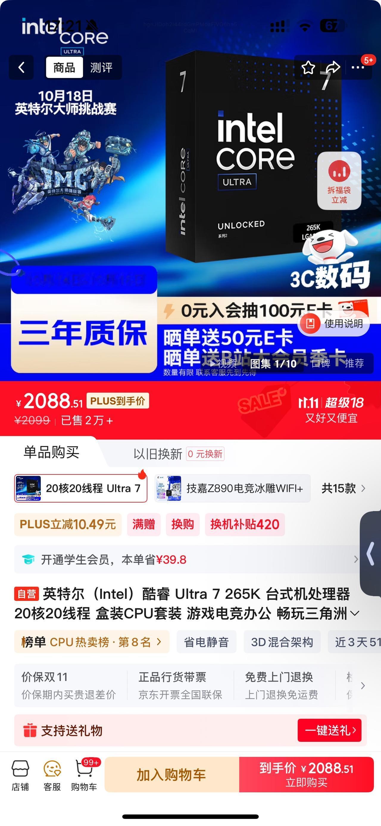 9800X3D换英特尔265K,然后再换回X3D,哪个更好?说下不同体验 先说总结:如果你还没买9800X3D处理器我更推荐英特尔的U系列,比如U7 265K 关于9800X3D网上聊的最多的就是会抽帧,我也是打永劫、吃鸡出现帧率触底,觉得卡才换265K的。为选265K,首先信了网上说的intel不卡,再有intel十三十四代暴雷,结合预算,所以1900块拿下了265K。 而在换完后,我发现两家CPU都会有帧率触底问题,只不过时间长短而已,但都有点影响体验。我平时没事就高强度永劫吃鸡,一次六七个小时。再加上年纪二十出头,我对fps游戏卡顿感知很明显。 那为啥9800X3D的掉帧声音这么大,实际我感觉是价格,因为它刚出来的时候很抢手,甚至五六千,后来四千多,各大装机也是建议打游戏就用9800X3D,最牛的。但用户到手发现,这么贵的CPU也会卡?于是乎就有了热度。 而为啥换了英特尔又换回9800X3D了,原因也简单,既然都会抽帧,为啥我不用平时帧率更高的U呢?我前面已经说了,我对fps很敏感,用了9800X3D后,再用intel,帧率降低我的确也能感知到不如之前流畅了。那为啥建议没买的可以买intel的U系列嘞?因为本身U7 265K也不差,吃鸡跑图能稳300帧,打架200帧,人多的话基本一百多帧,对于没用过更高帧率的人来说,自然觉得够用。 而如果你玩儿瓦这种游戏,就更没啥问题了,X3D跟U7 265K没太大区别,六七百帧。另外就是intel20核心啥的,也适合办公,多任务处理比9800X3D好。 所以你既有生产力办公需求,又要打游戏,那选intel。但是只打游戏,预算够,我还是建议9800X3D,毕竟现在价格下来了点,3100就能到手盒装,散片的话会更便宜咯~