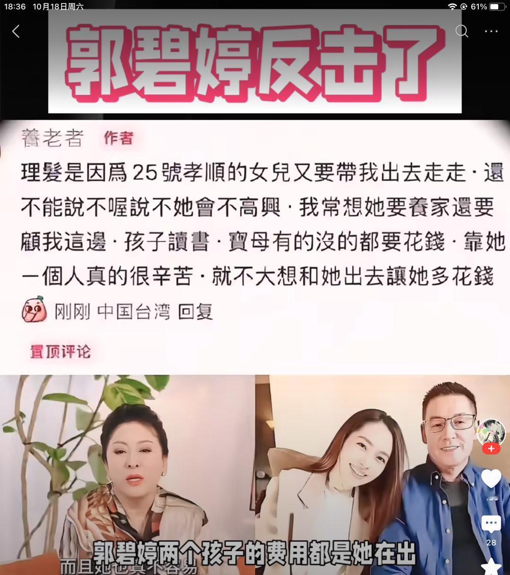 郭碧婷反击了?难不成豪门梦碎? 郭爸发文心疼女儿,又要养孩子,又要还房贷(这句话不是郭爸说的)花钱的地方很多,靠她一个人真的很辛苦。不大想和她出去让她多花钱。 乍一看,这话也没什么毛病。但经不起细品。婆婆说过,定期会给儿媳妇一笔钱,用来养孩子。这又是咋说的呢?网友操心,是不是向家落寞了,拿不出多少钱了。还说怪不得带货了,多便宜的都卖,一边嫌弃,一边吆喝。实在很败好感。 其实吧,我不这么想。卖东西为了挣钱不假,她婆婆随便一个包包几十万,普通人一套房子也不过人家一两个包的事。有的人说了,她不一定做。而有的人做了,他不一定说。臧克家的诗,耐人寻味。 再有钱的人,也跟普通人一样,相处起来,也诸多的心思。婆媳关系,是永恒的命题,能答八十分,就是皆大欢喜了。