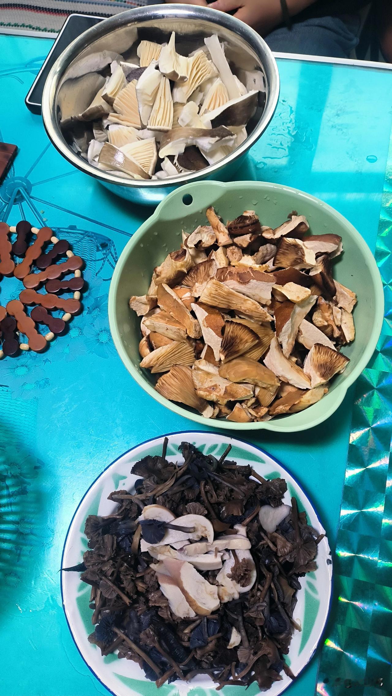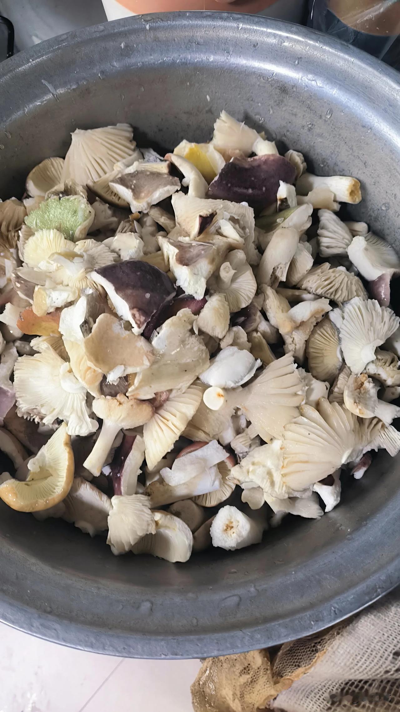 今年的野生菌实在是太多了,往年这个时候,菌子差不多都绝迹了。 可今年不一样,菌子还在层出不穷地破土而出,估计是今年的雨水太充沛了。 天空就像一个善变的孩子,时而阳光明媚,时而泪流满面。刚刚还晴空万里,烈日炎炎,过了一会就乌云密布,大雨瓢泼。 这种天气最适宜野生菌生长了,雨过天晴你若上山的话,保准能满载而归。 今天周末,特意上了一趟山,不到三个小时就捡了满满一背篓,今晚又可以大快朵颐了。 昨天捡的还没有吃完,今天又有这么多了。 吃不完的先用水煮一道,凉冷了放在冰箱里就可以长久保存。 想吃的时候拿出来,热锅下猪油,佐以干辣椒、大蒜,大火爆炒,一盘色香味俱全的山珍就出锅了。 大自然的馈赠,总是那么不经意间,带给我们无尽的惊喜与美好,只要你能不辞辛苦。